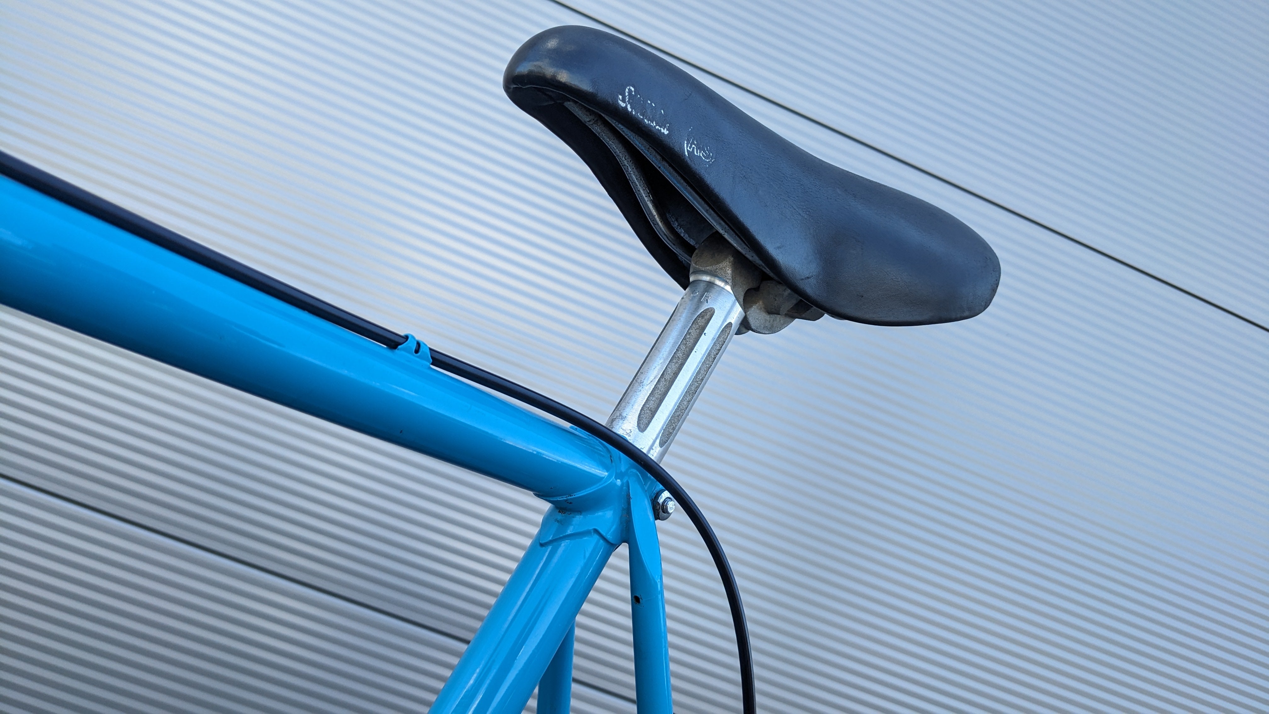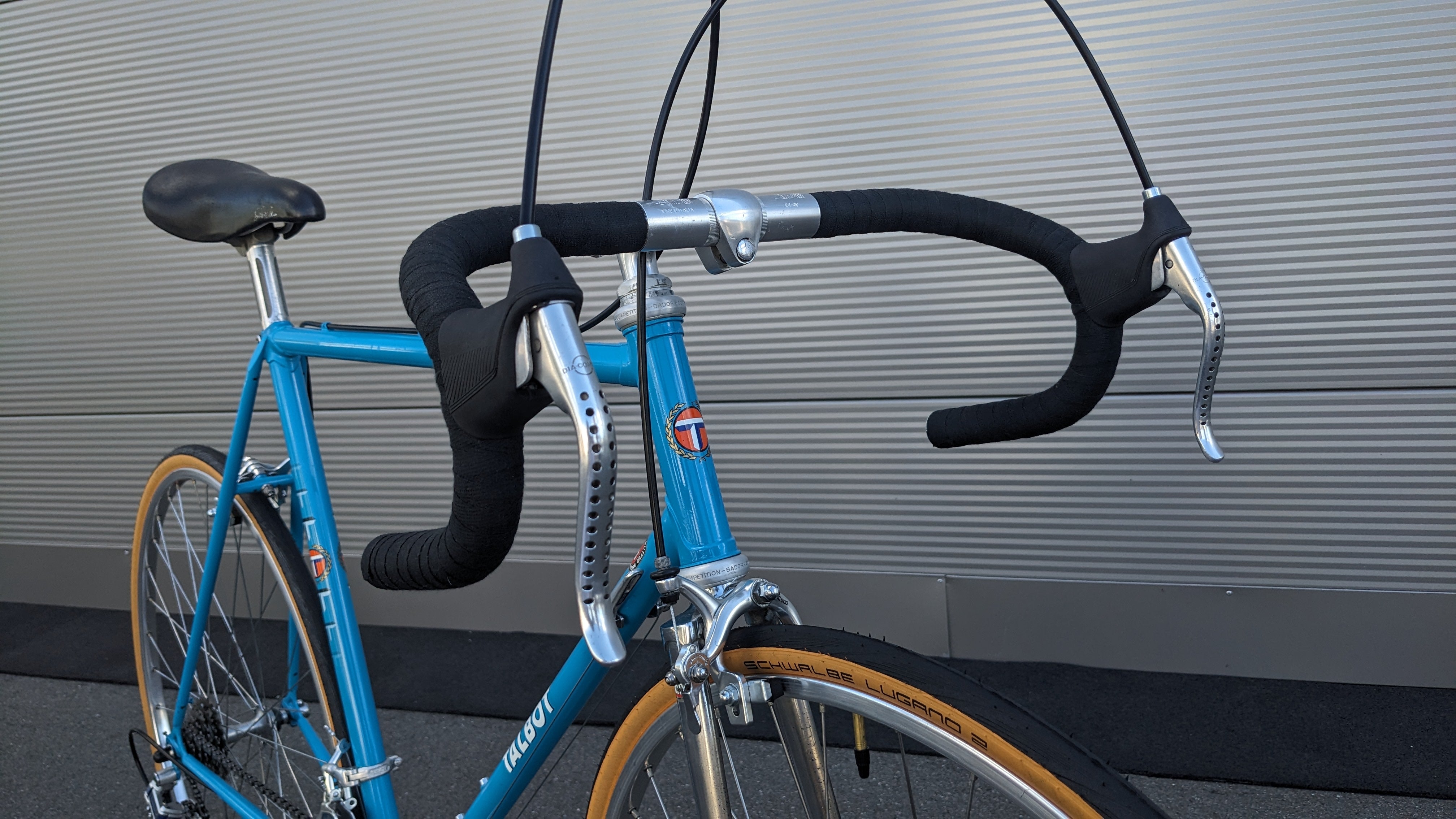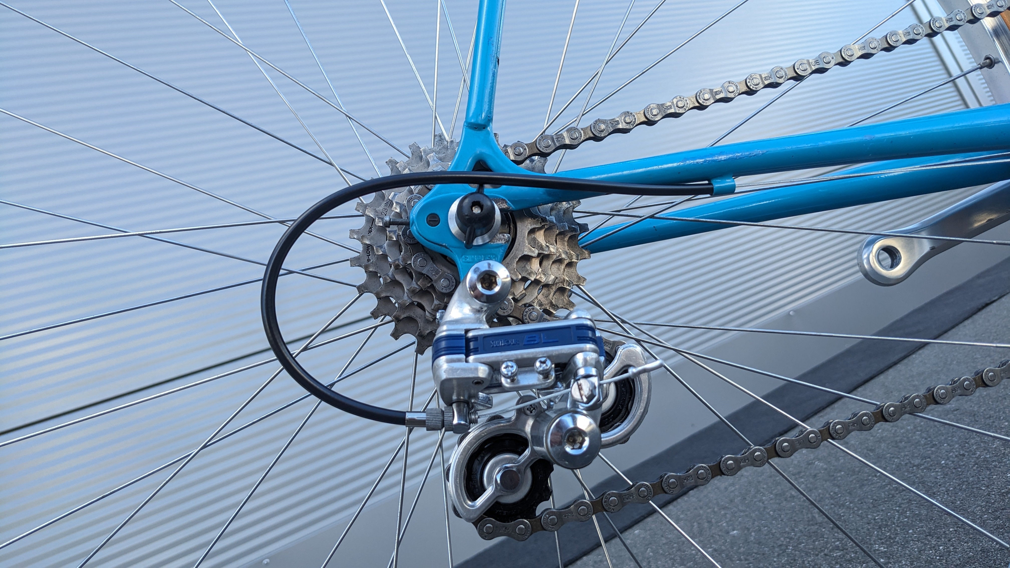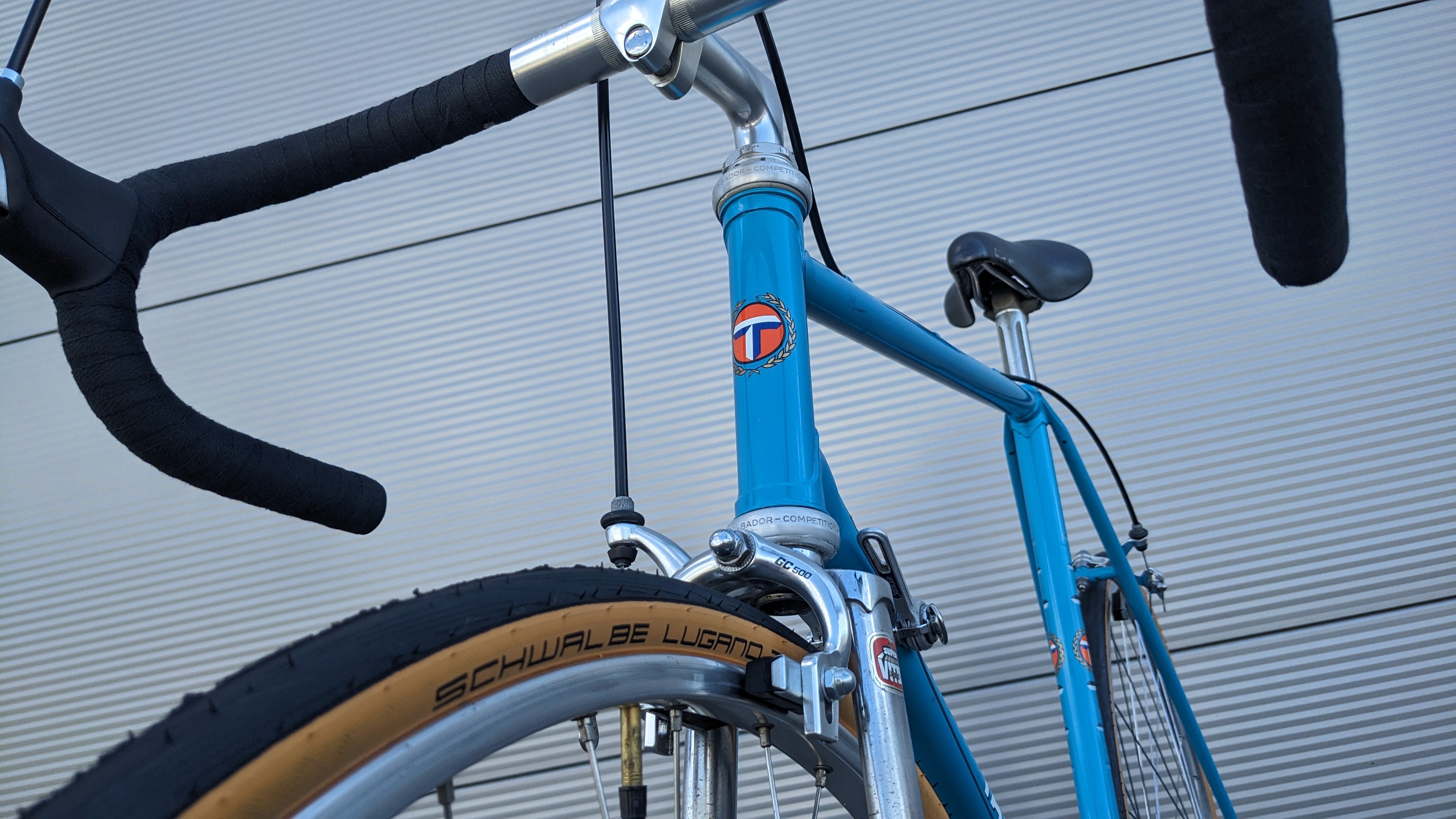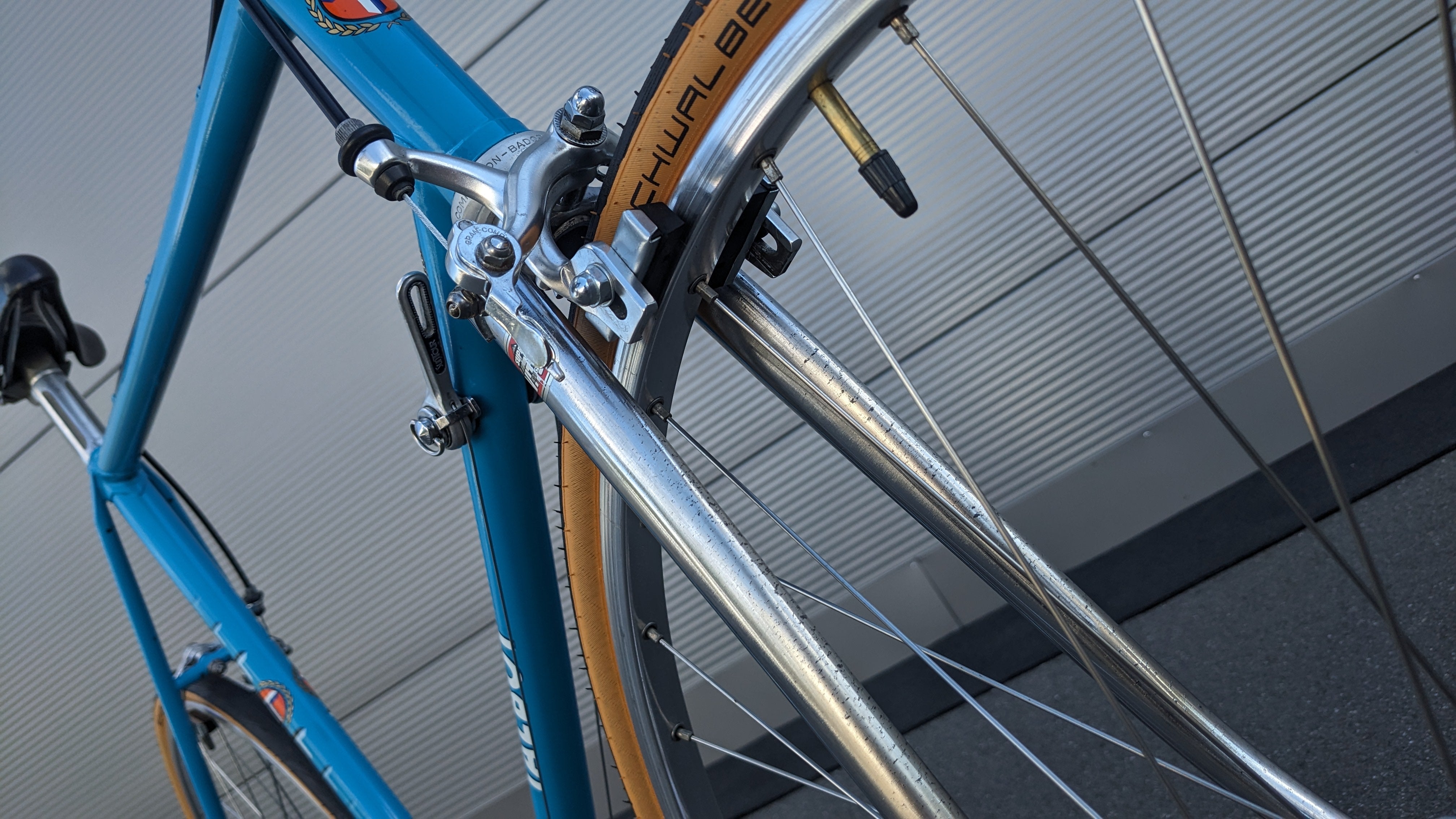 The bike is in a used condition, but has been fully restored with all relevant wearing parts replaced. The frame is free of dents, cracks, and bends, with only minor paint wear. Any paint defects have been carefully touched up to maintain and enhance its aesthetics. This retro racing bike is available in a fully functional state and is perfect for your first vintage bike tour.