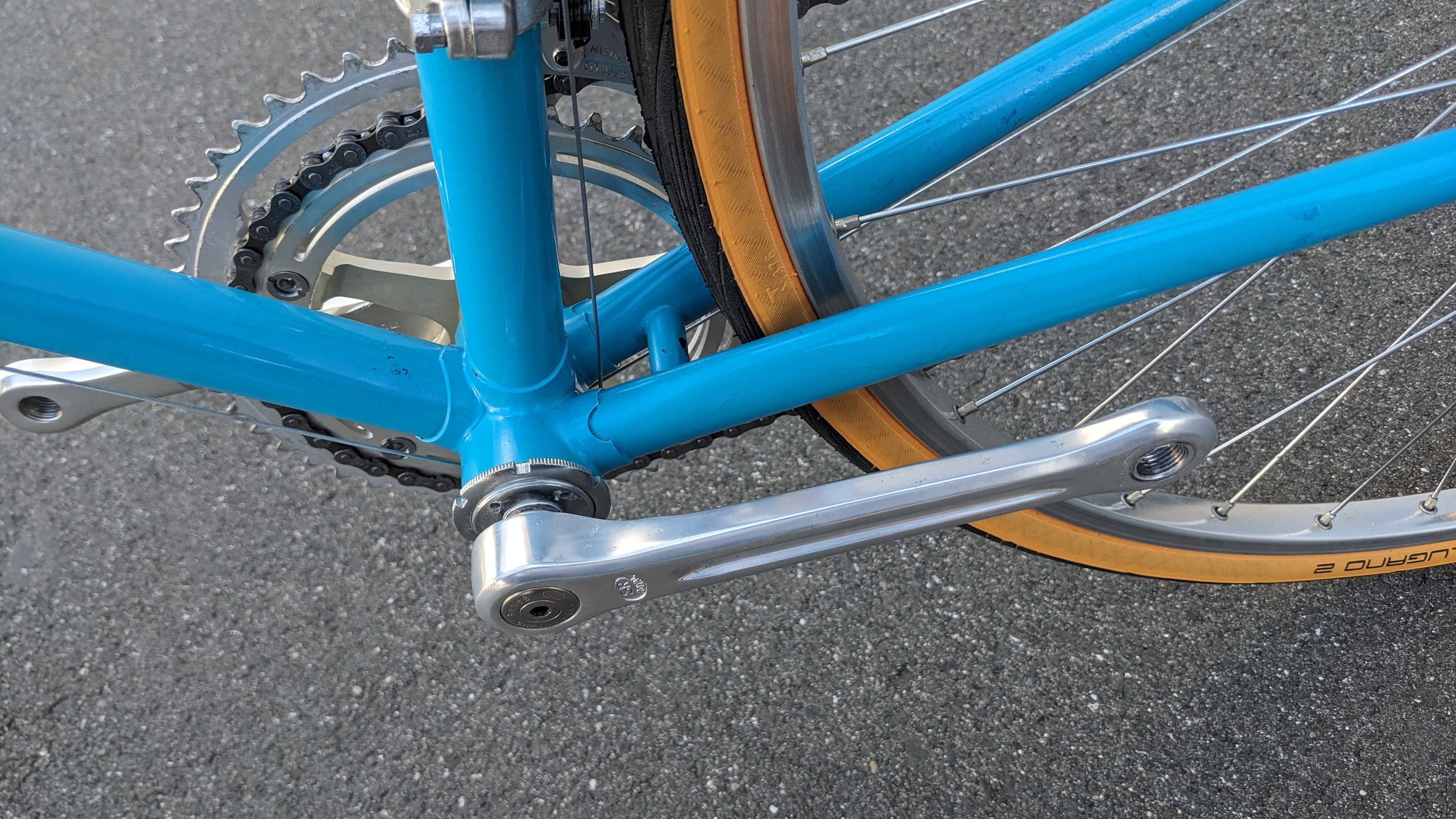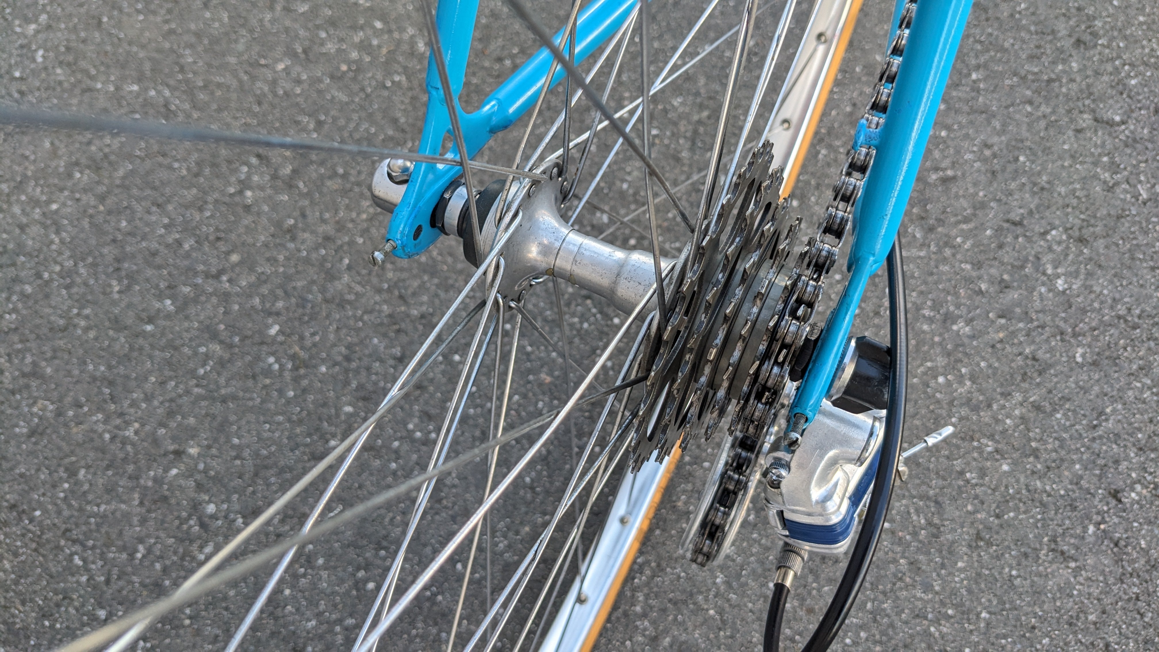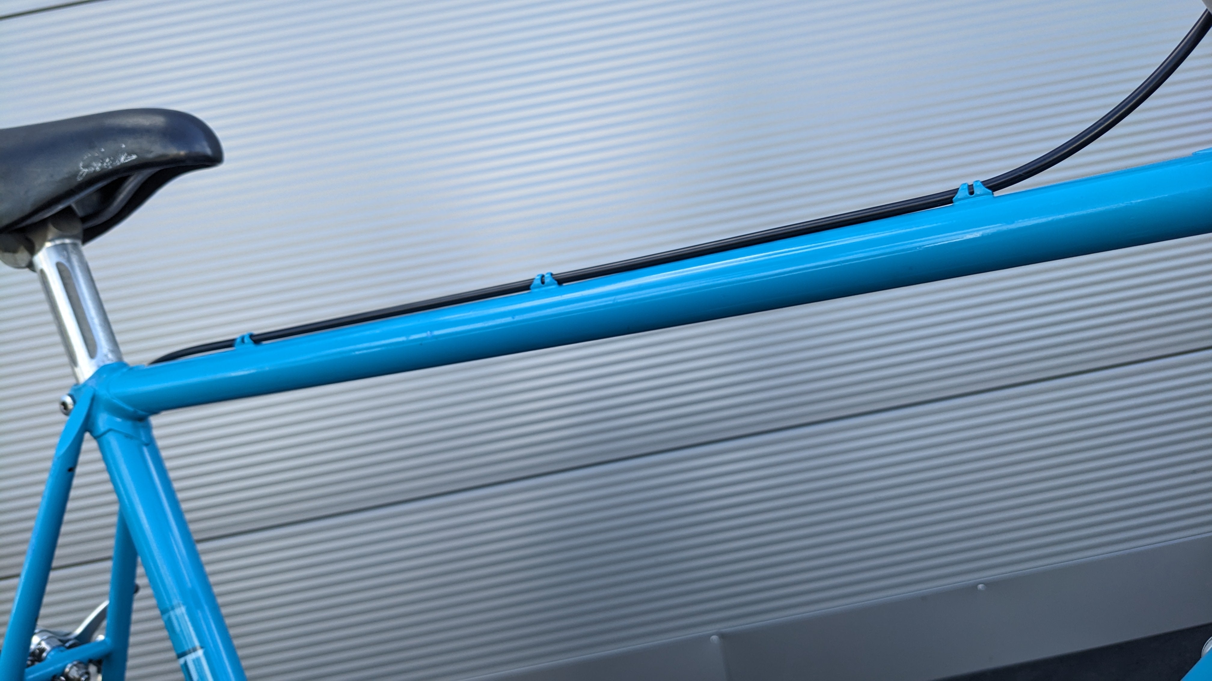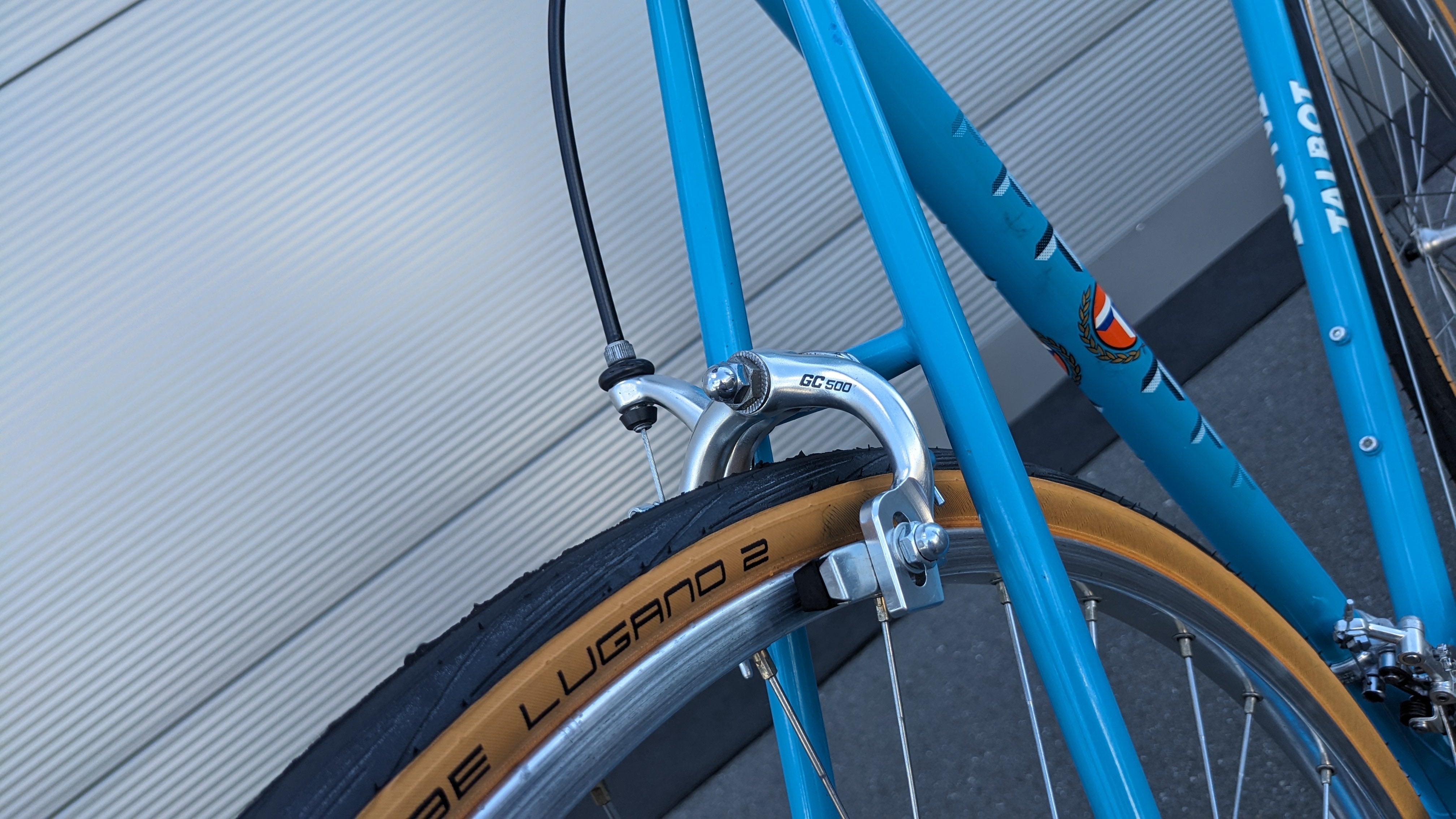 The bike is in a used condition, but has been fully restored with all relevant wearing parts replaced. The frame is free of dents, cracks, and bends, with only minor paint wear. Any paint defects have been carefully touched up to maintain and enhance its aesthetics. This retro racing bike is available in a fully functional state and is perfect for your first vintage bike tour.