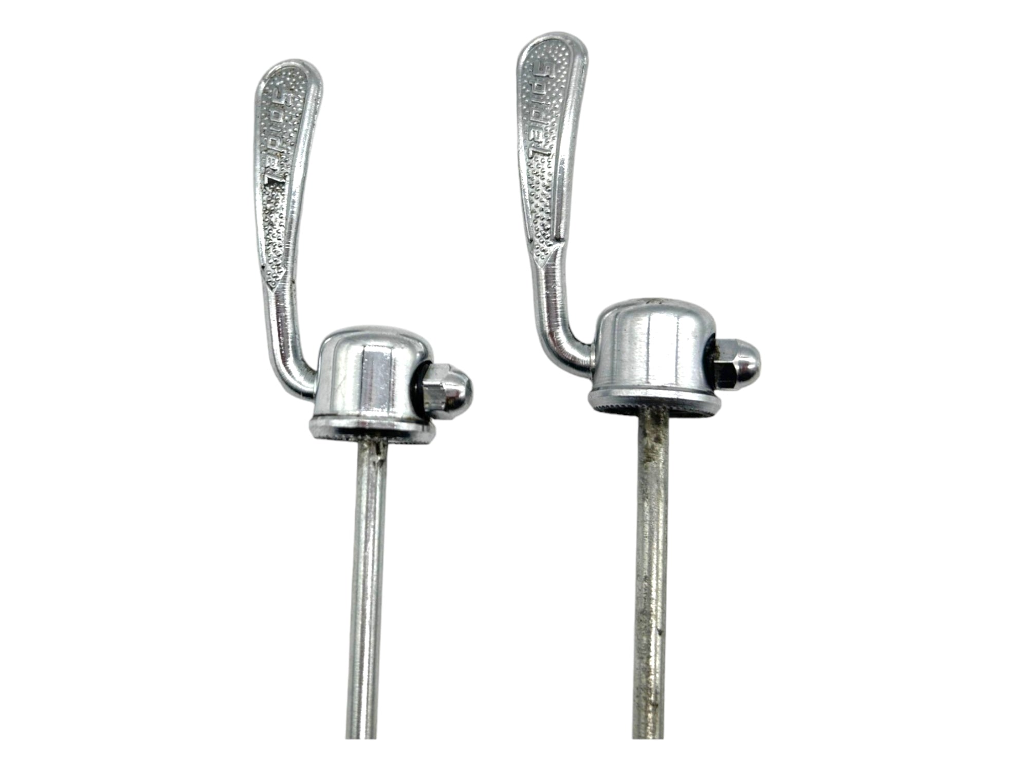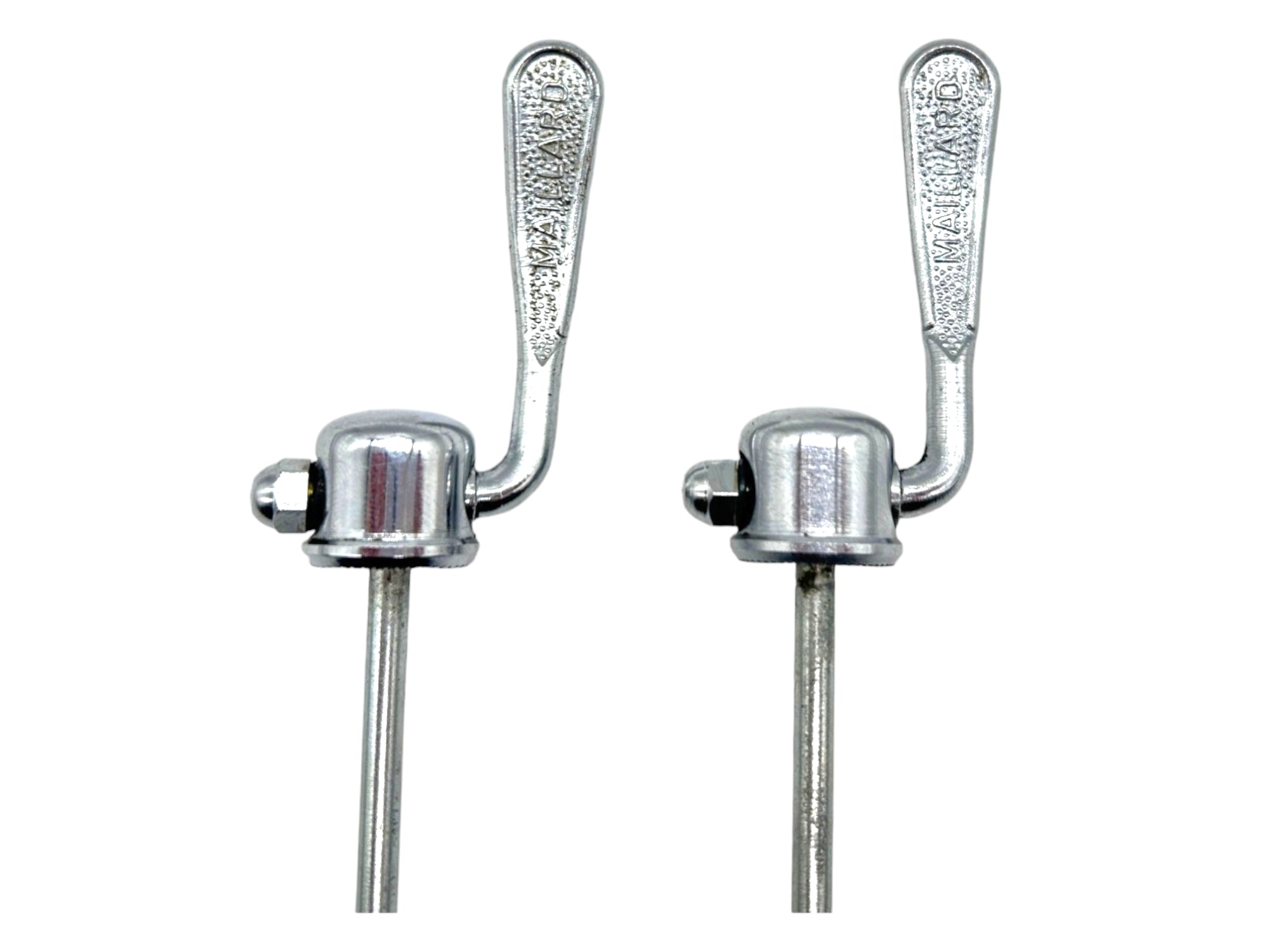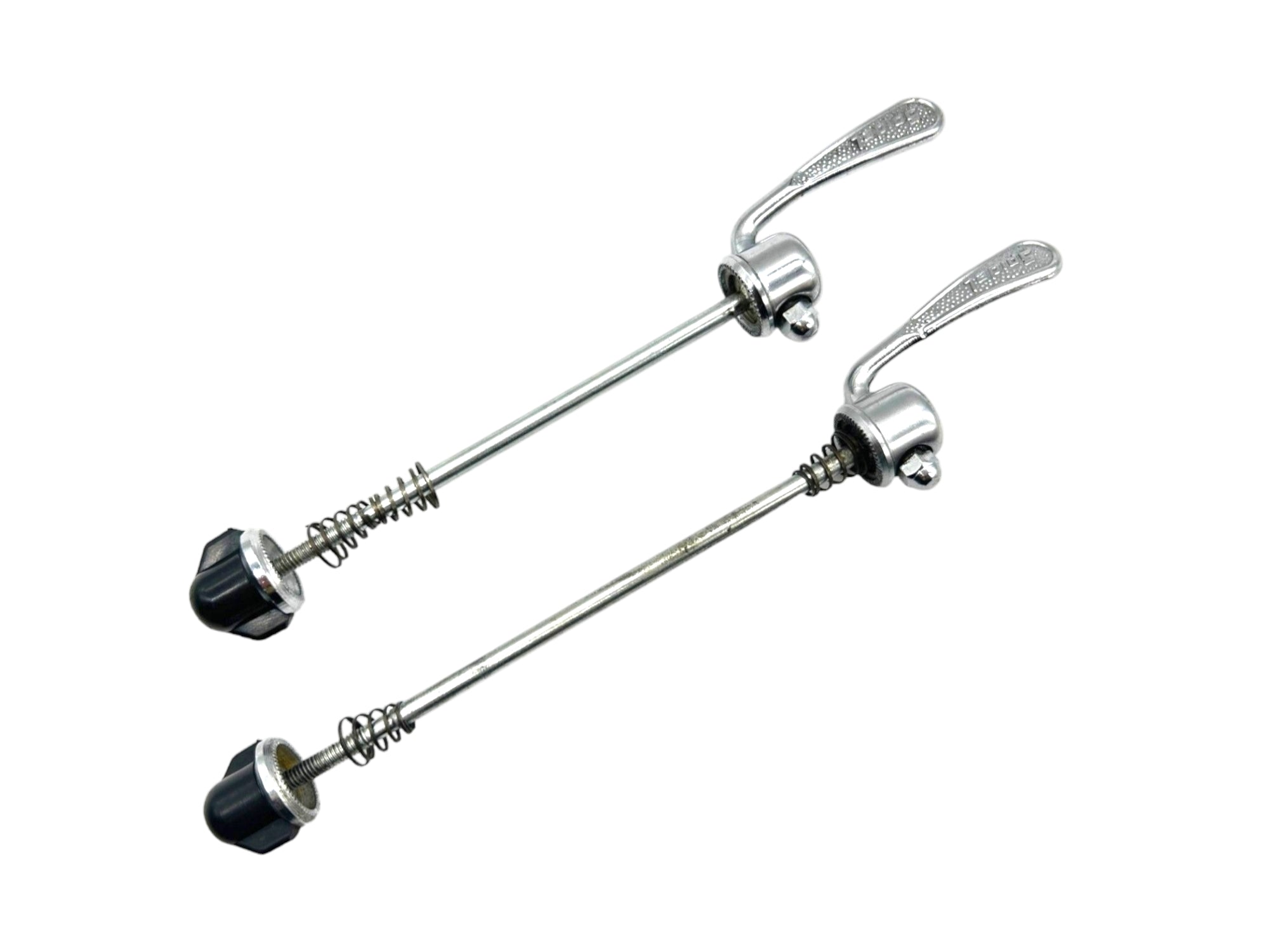 Spidel / Maillard quick release skewer set with 130 / 156 mm axles. Cleaned and fully functional — a classic French set, ideal for vintage wheel builds and steel frame restorations where period authenticity is key.
