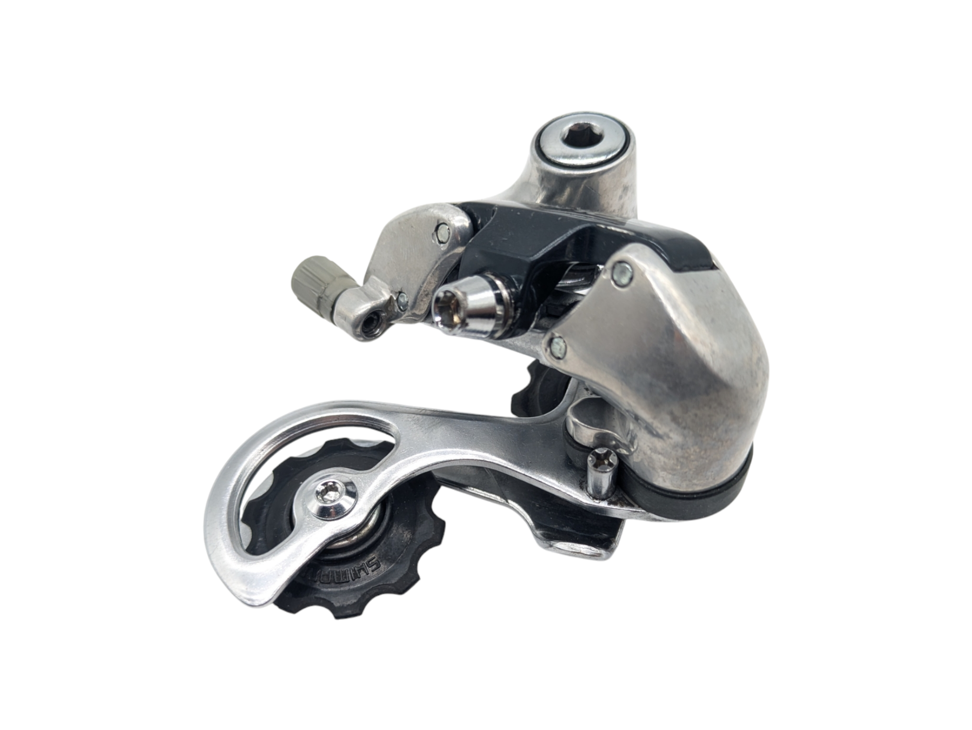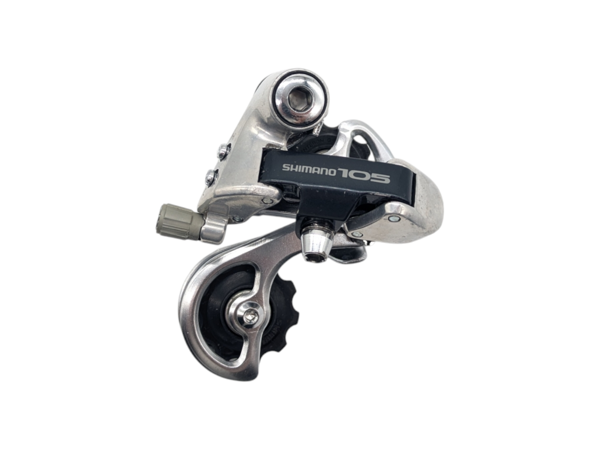 Shimano 105 RD-1050 rear derailleur, short cage design compatible with 6-7 speed cogs. Japan-made, introduced in the late 1980s and known for its reliable indexed shifting performance. A solid component for vintage road bike restorations or vintage cycling builds where genuine Ride feel and period correctness are valued.