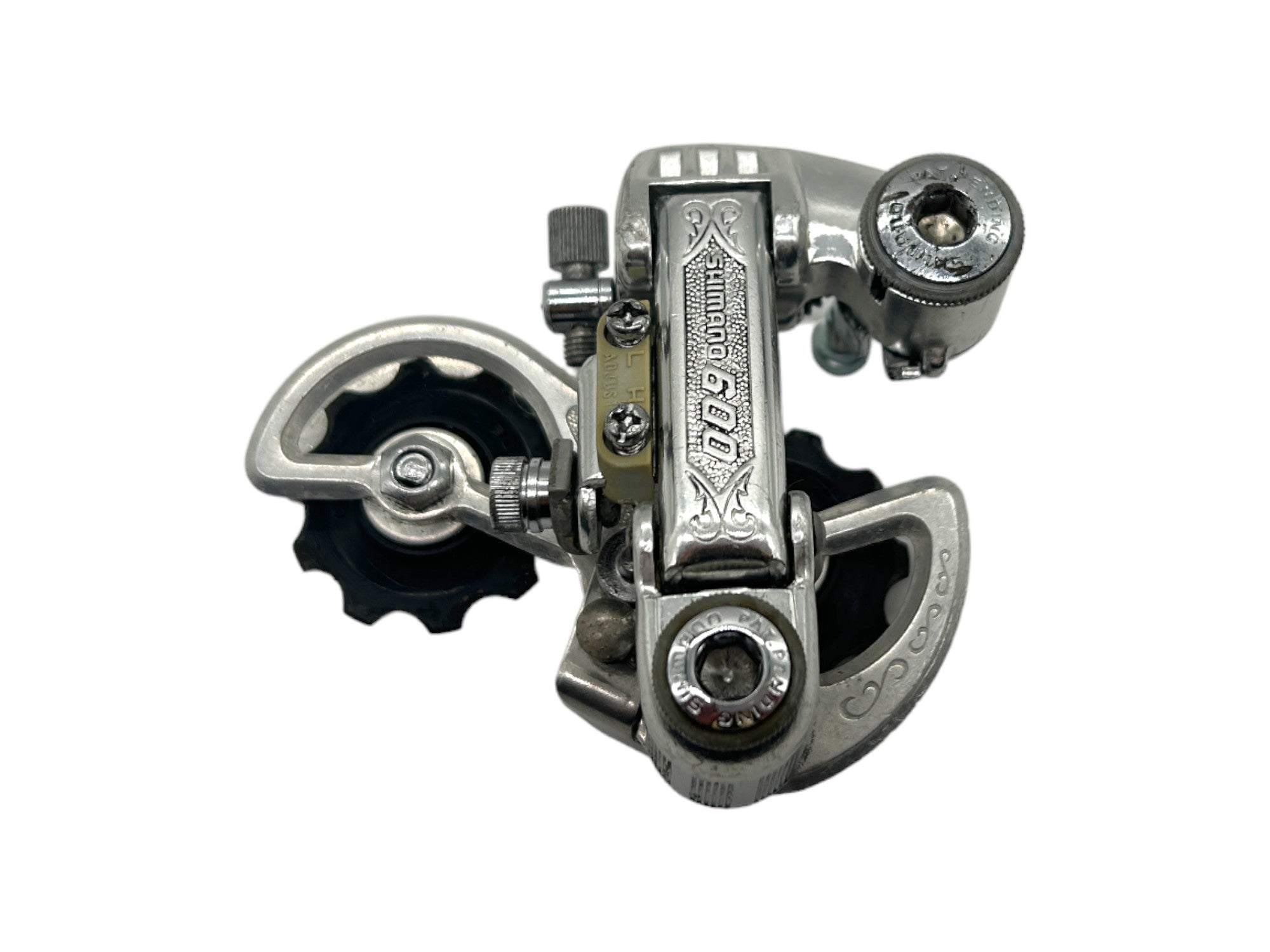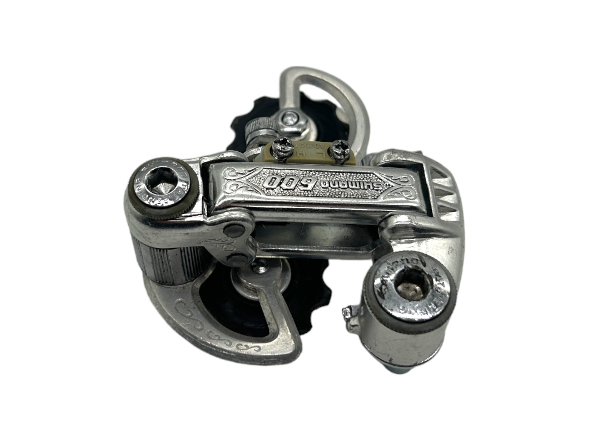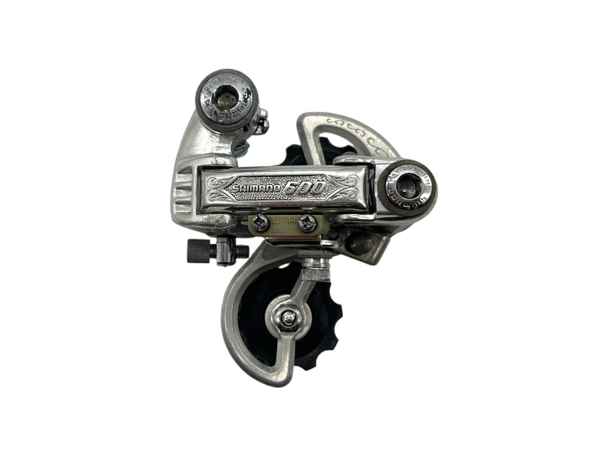 Shimano 600 EX Arabesque RD-6200 short-cage rear derailleur — used, cleaned and fully functional. A classic Japanese derailleur ideal for restoring vintage 6/7-speed systems or completing period-correct steel-frame builds.