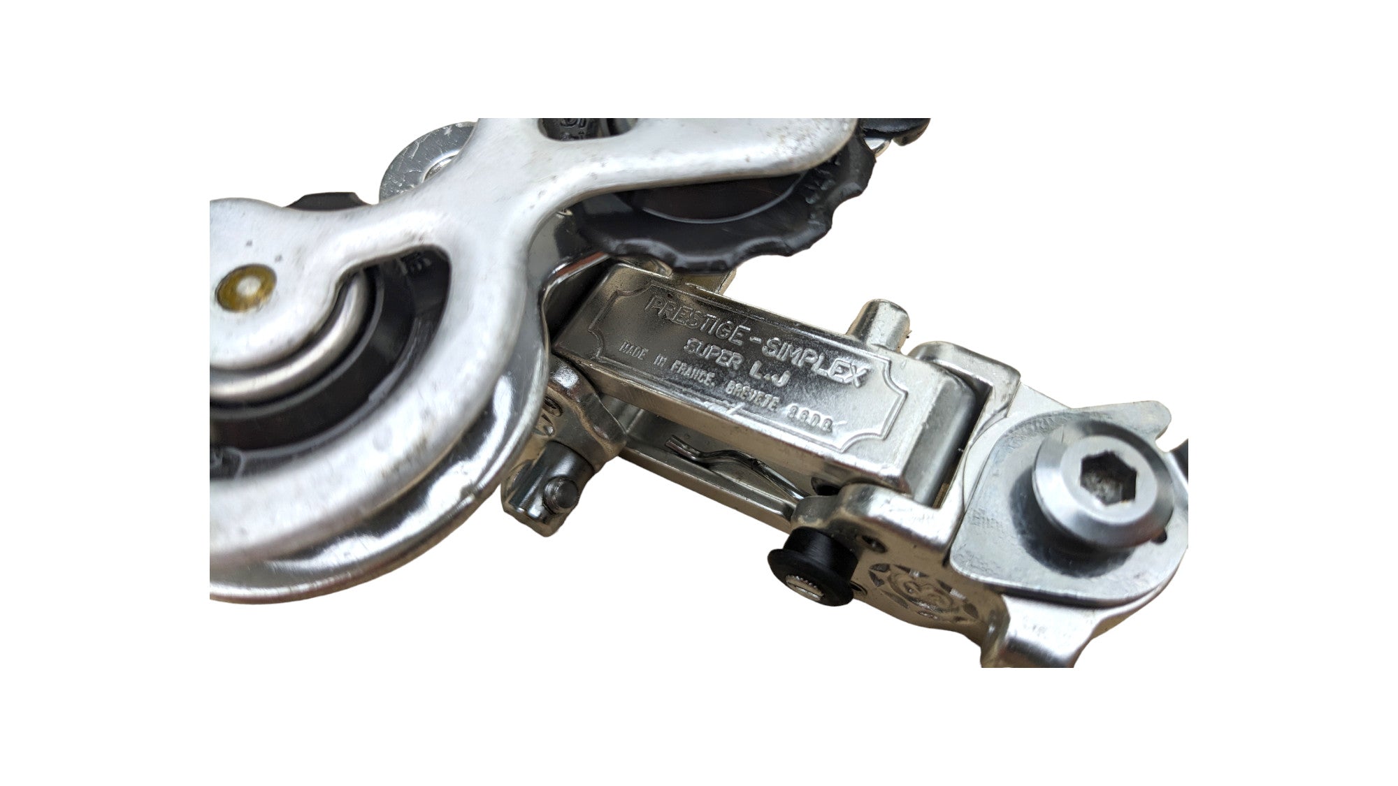 Simplex Prestige Super LJ rear derailleur. Used, cleaned and fully functional. A classic French component from Simplex — known for its distinctive style and period appeal in vintage road builds.