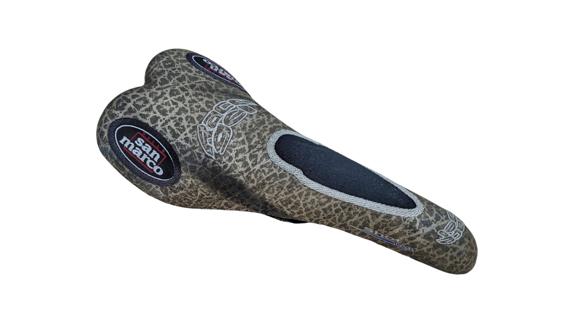 Selle San Marco Race Gel saddle. Used, cleaned and fully functional. A classic Italian gel-padded saddle — comfortable on long rides while keeping authentic vintage road bike aesthetics.