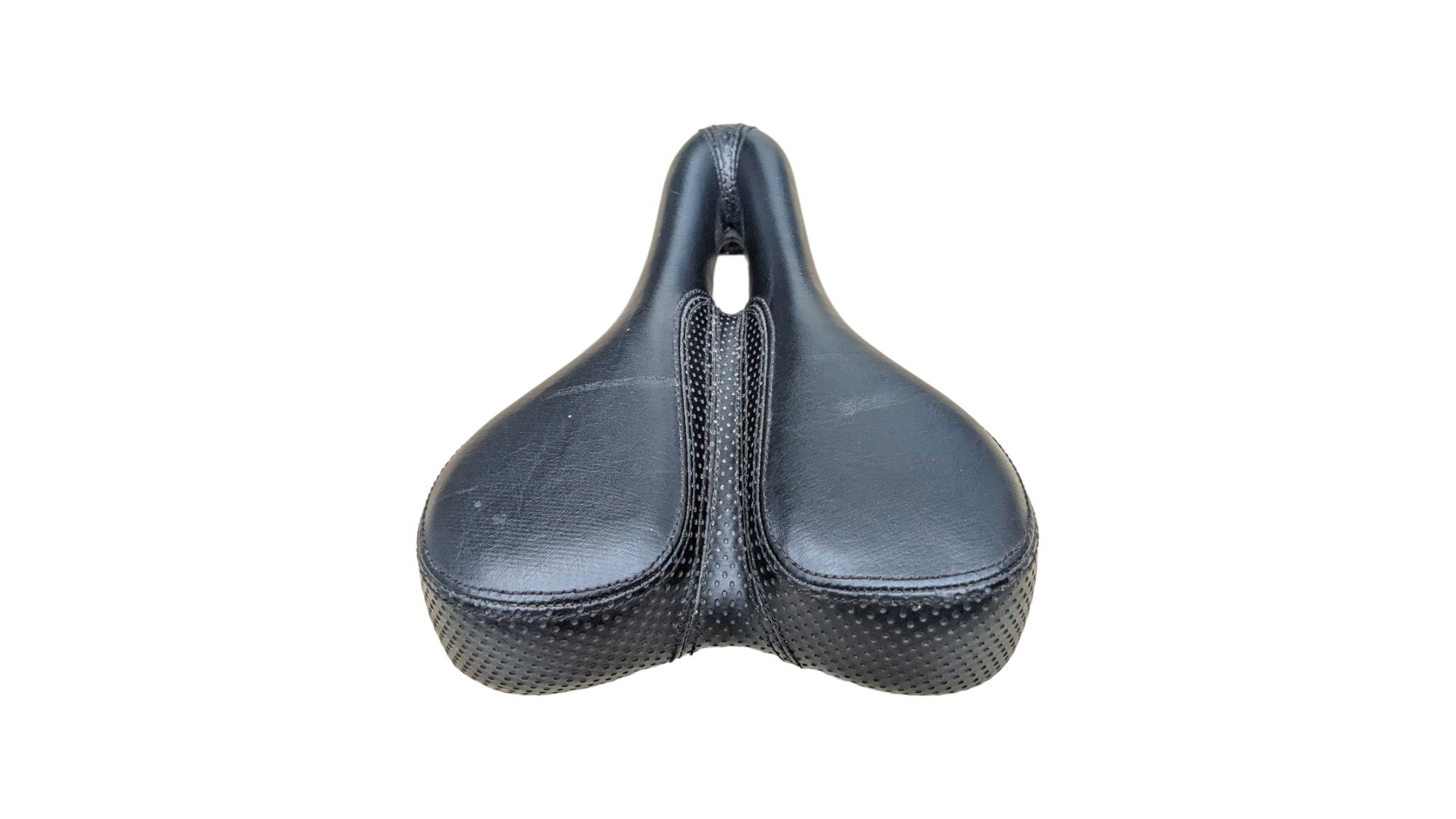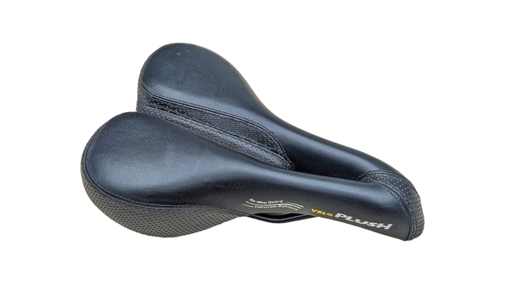 Velo Plush Deep Channel saddle in black. Used, cleaned and fully functional. Featuring the deep channel design for comfort and pressure relief, this classic saddle suits vintage road and touring builds looking for both style and comfort.