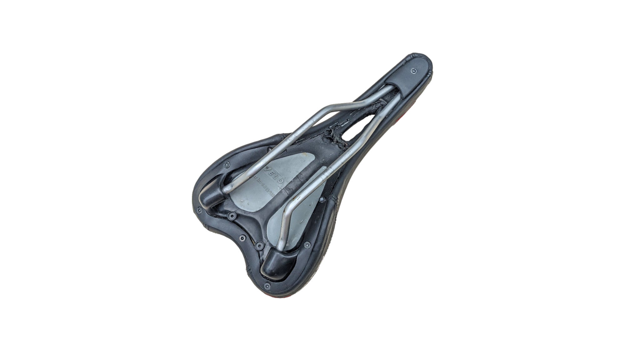 Velo Red X black saddle — used and cleaned, ready to mount. A simple, functional seat for vintage road bikes or everyday cycling needs.
