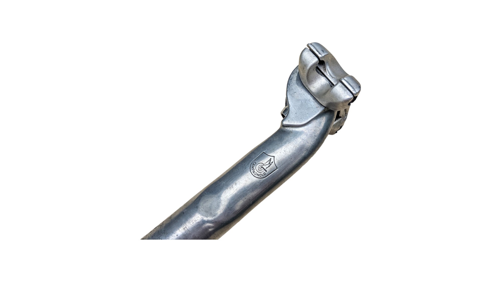Campagnolo C-Record AERO Shield seat post, 26.6 mm with 100 mm clamping length. Used, cleaned and fully functional. Iconic Italian C-Record hardware for classic steel frames and period Campagnolo builds.