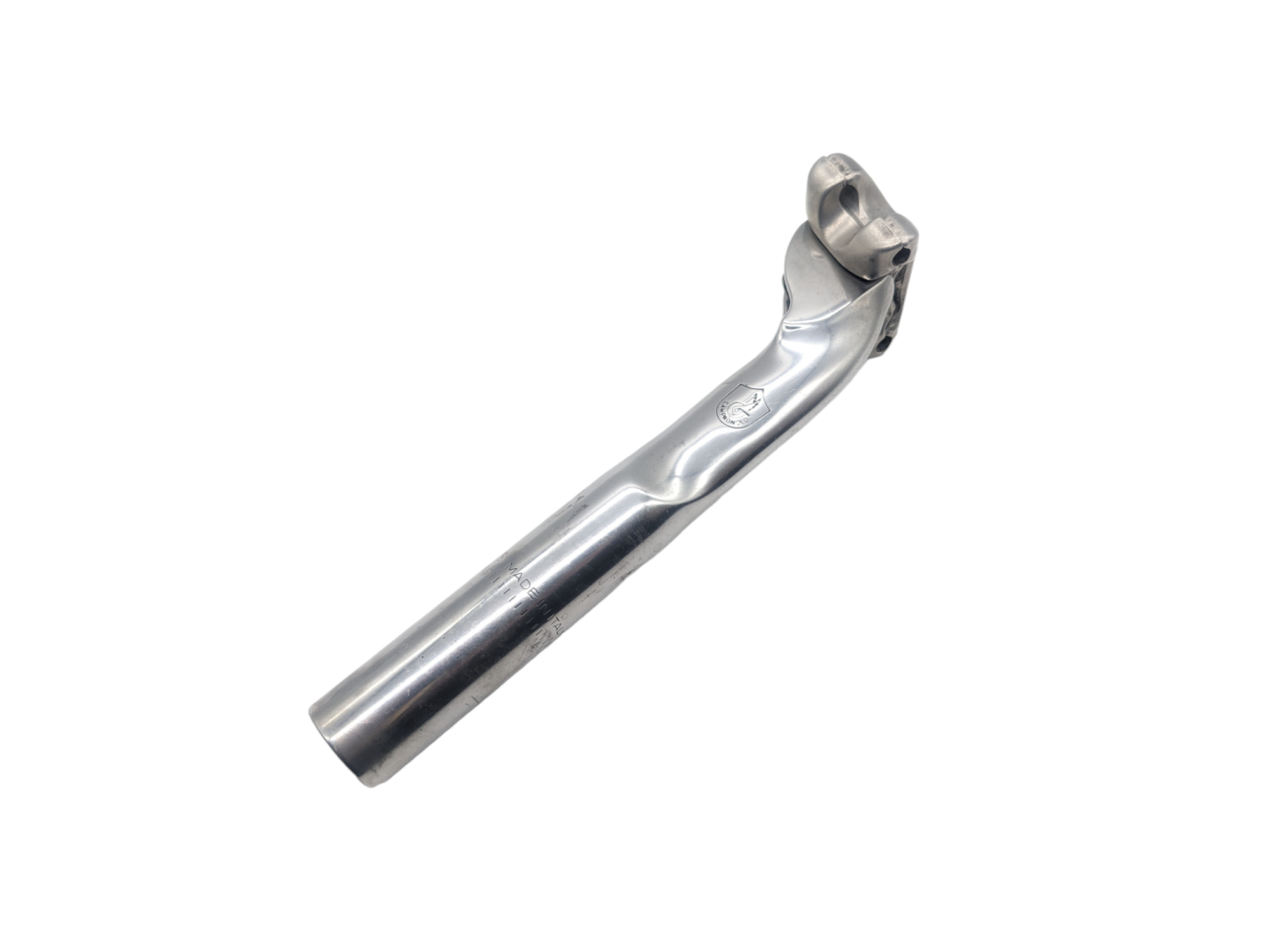 Campagnolo C-Record Aero Shield seat post, 27.2 mm, 100 mm effective clamping length. Cleaned and fully functional — a sleek Italian classic for vintage road and retro steel builds.
