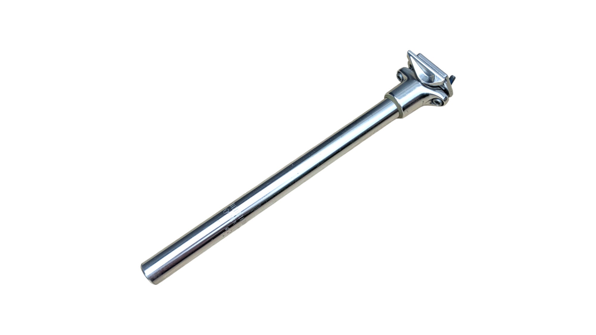 Seatpost Alu Silver 23.4 mm with 200 mm length. Used, cleaned and fully functional. A straightforward aluminum post in silver, suitable for vintage frames requiring the uncommon 23.4 mm size.