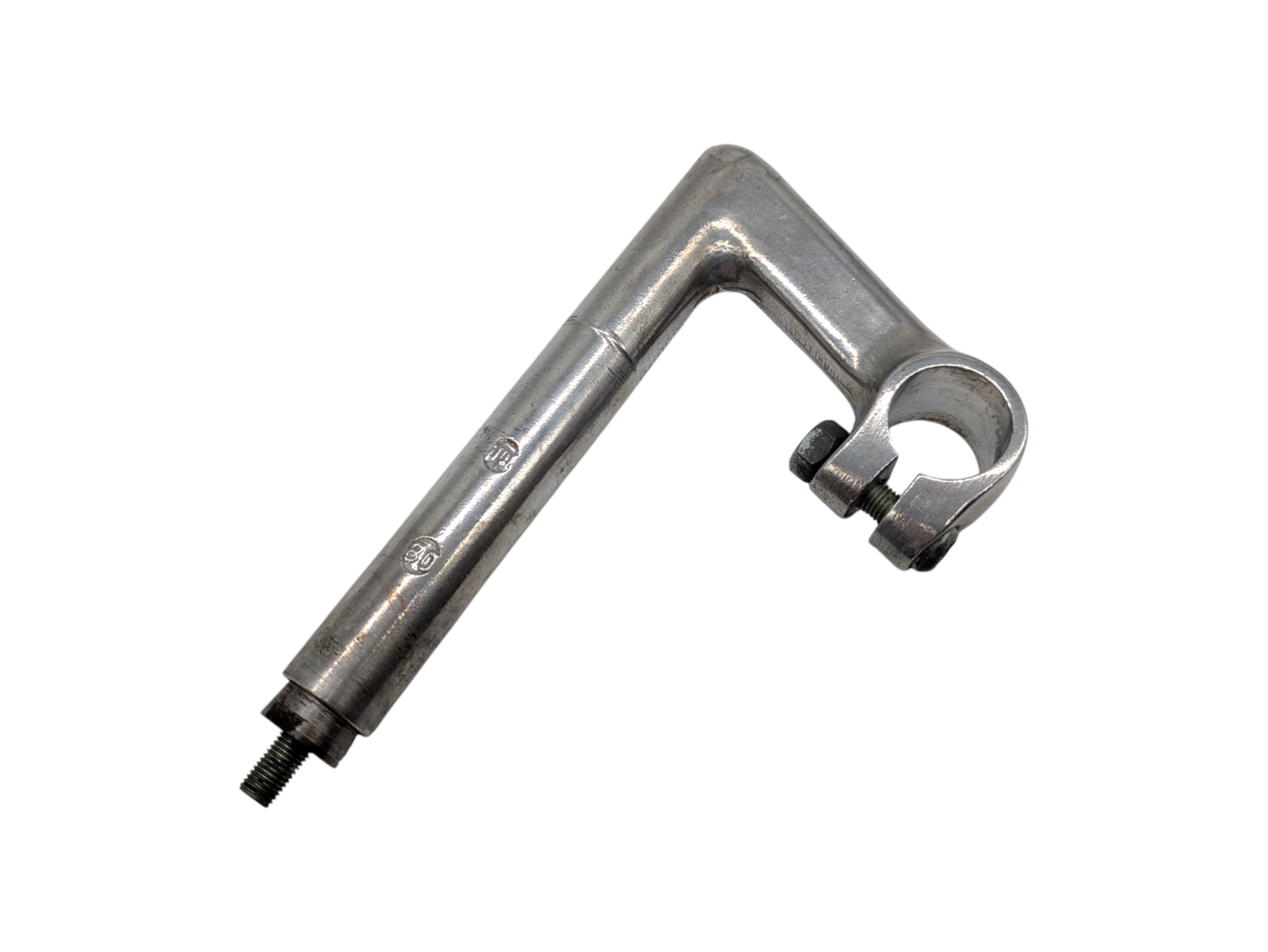 Vintage stem 80 mm with 25,4 mm handlebar clamp and 22,2 mm shaft diameter. Clean, functional stem in silver that fits many classic road bike setups. A solid choice if you’re completing a retro build or restoring a traditional cycling frame.
