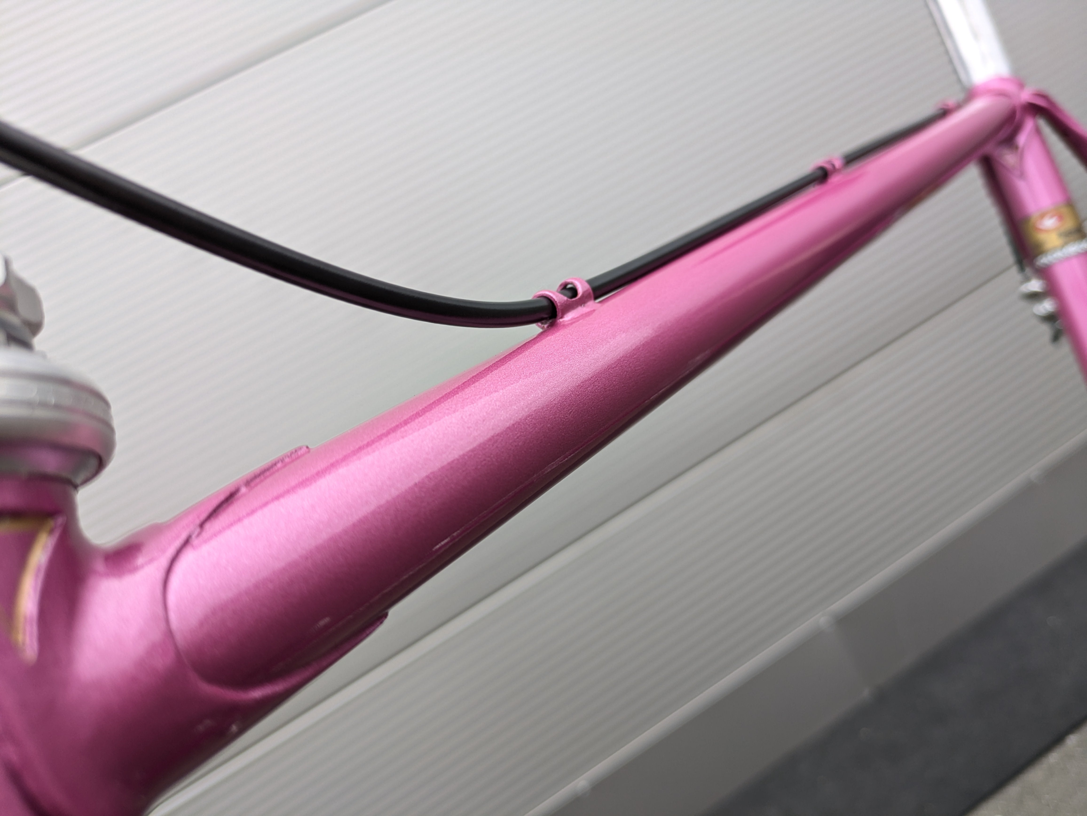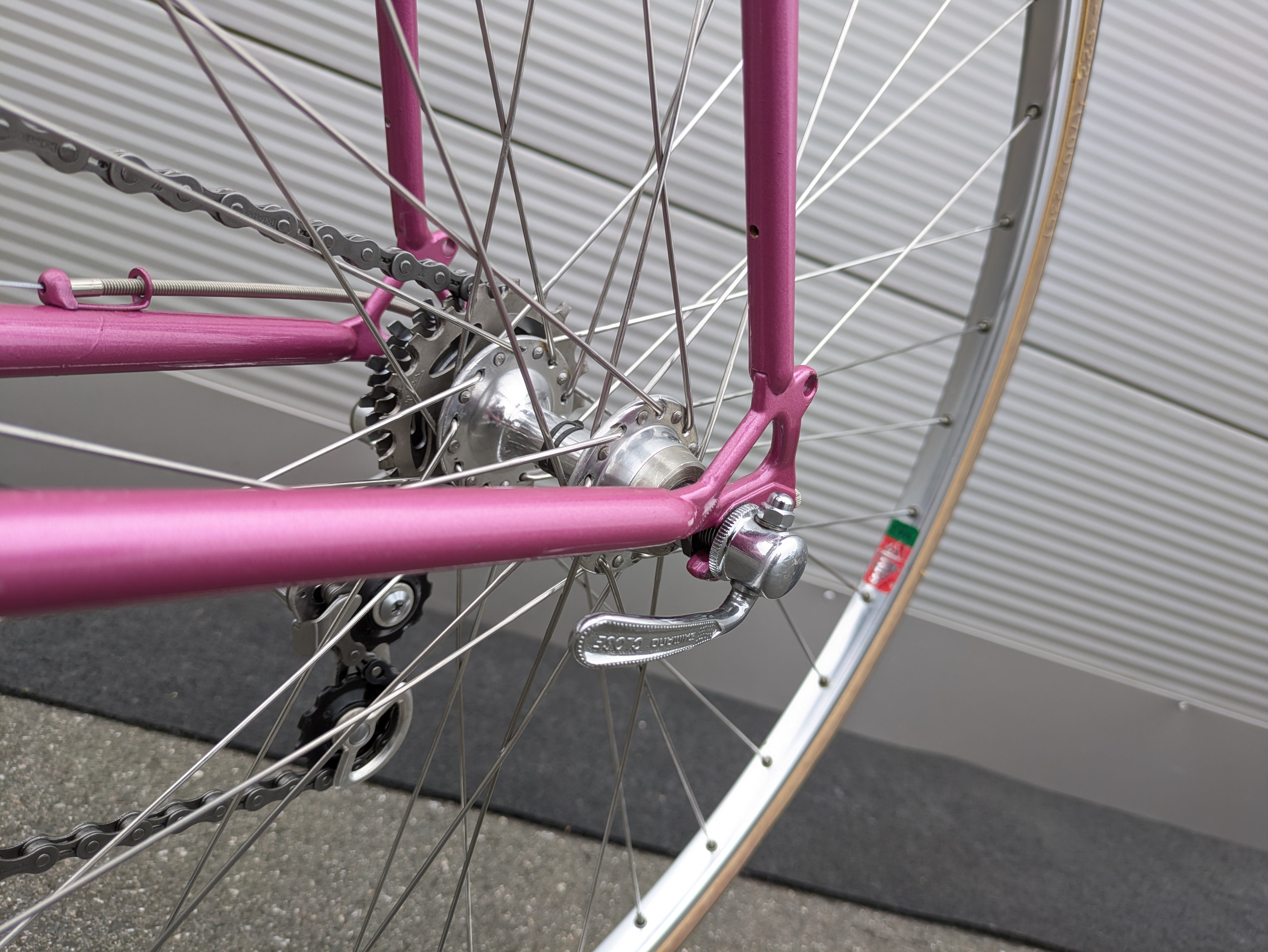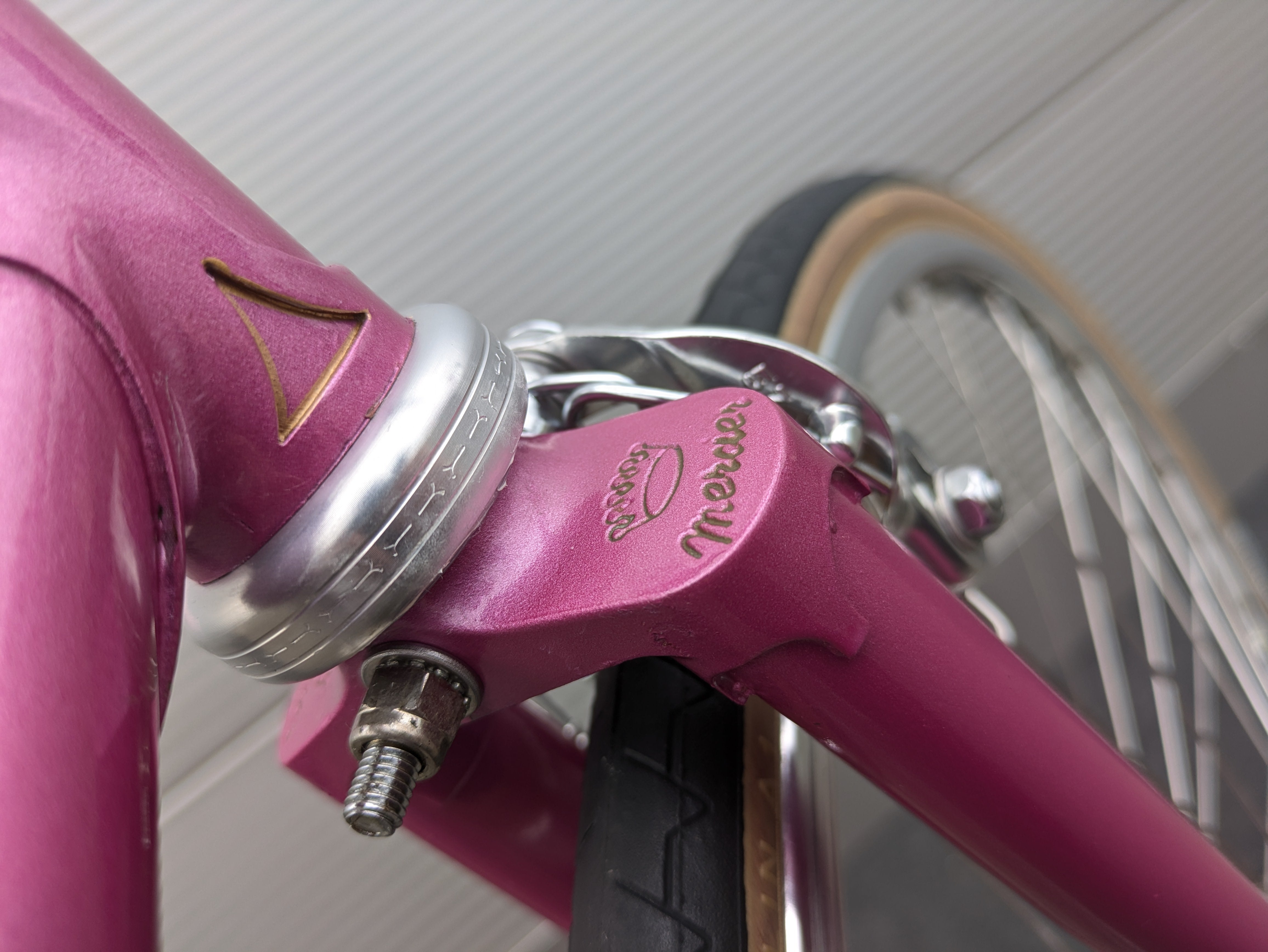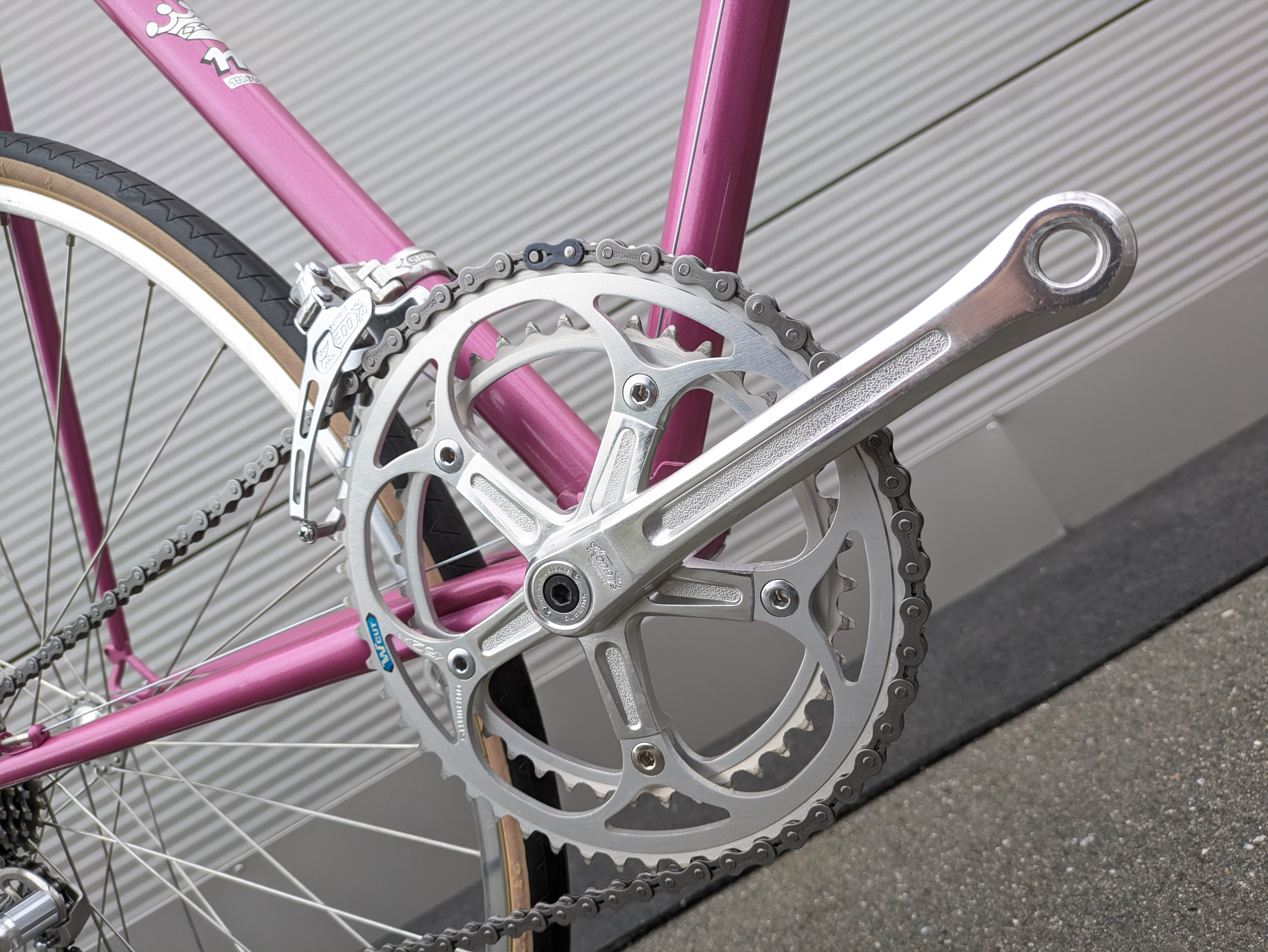 Dieses Mercier aus den frühen 1980er-Jahren ist ein wunderschön erhaltenes Beispiel französischer Rahmenbaukunst. Der Rahmen besteht aus hochwertigem Columbus-Stahl, der für seine ideale Kombination aus Steifigkeit und Komfort bekannt ist, und trägt den originalen rosafarbenen Lack – elegant, klassisch und typisch Mercier. Die klaren Linien und die feinen Übergänge der Muffen spiegeln die präzise Handarbeit wider, für die Mercier berühmt war.