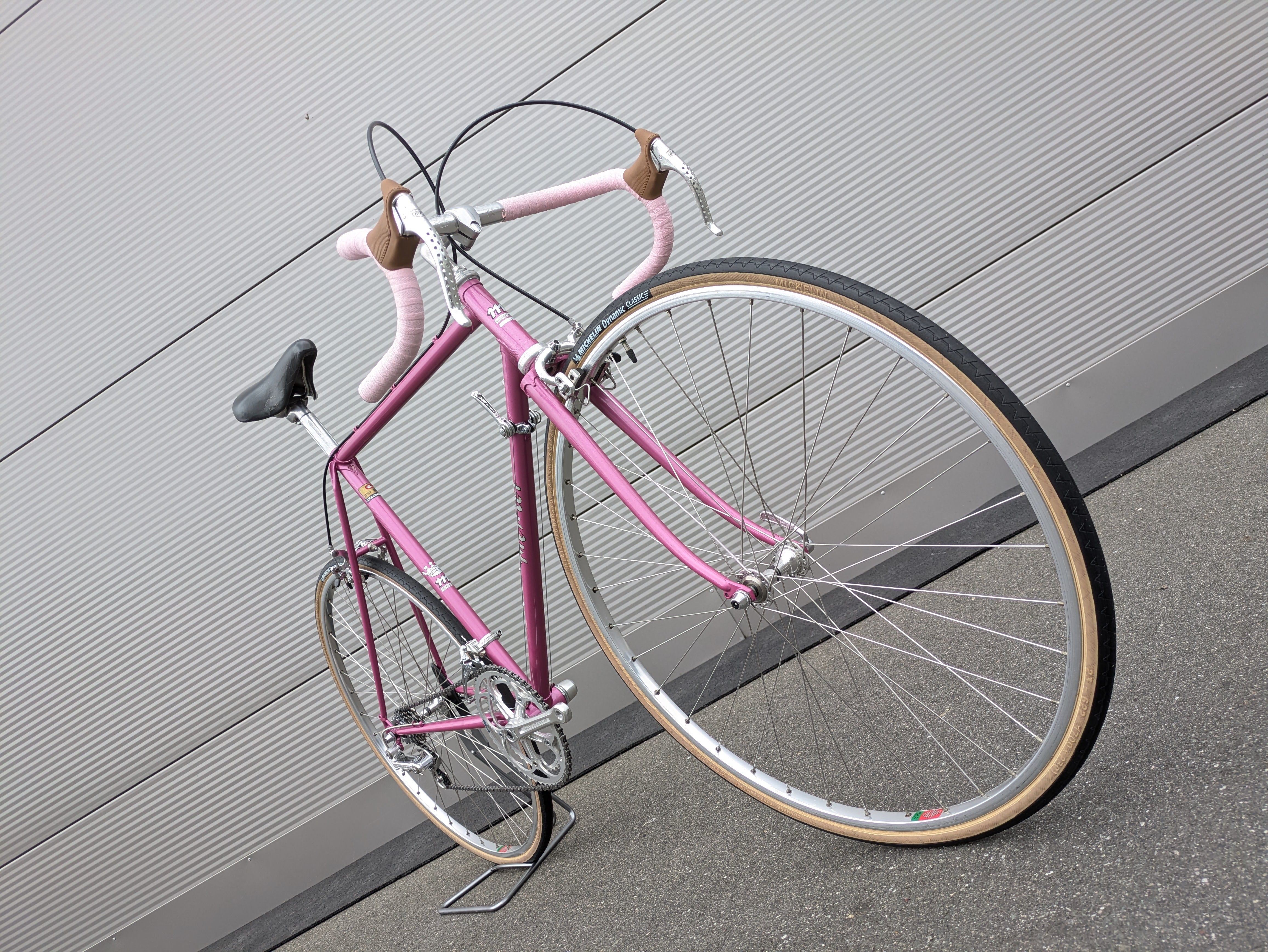 In den frühen 1980er-Jahren kombinierte Mercier seine klassische französische Handwerkskunst mit modernem Materialeinsatz. Hochwertige Columbus- und Vitus-Stahlrohre bildeten die Grundlage für leichte, reaktionsfreudige Rahmen, während charakteristische Rosatöne und feine Details den unverwechselbaren Stil der Marke unterstrichen. Dieses Erbe französischer Eleganz und technischer Präzision zeigt sich auch in diesem restaurierten Exemplar.