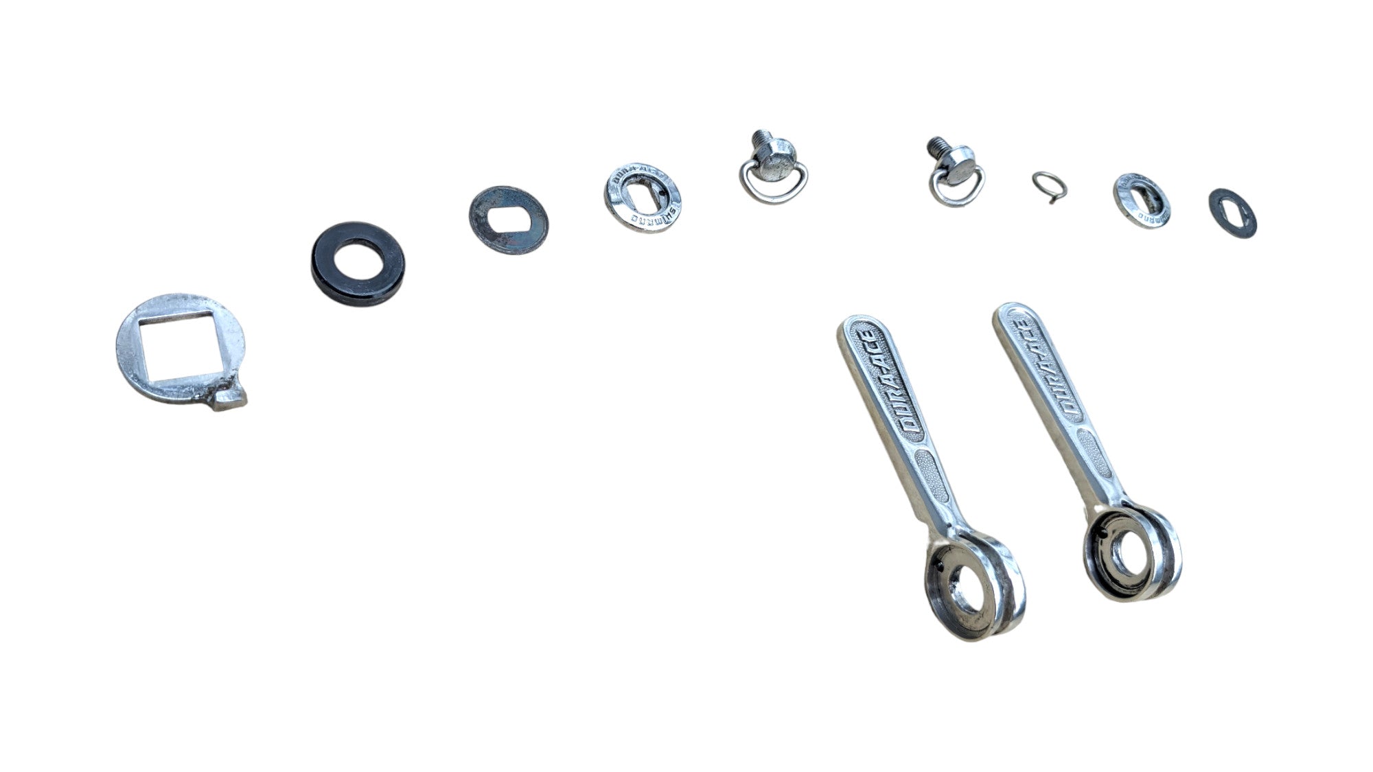 Shimano Dura-Ace EX SL-7200 Unterrohr-Schalthebel. Gebraucht, gereinigt und voll funktionsfähig. Ein raffinierter japanischer Klassiker aus der Dura-Ace EX-Serie – leichtgängig und zuverlässig, ideal für Vintage-Rennräder und zeitgenössische Umbauten.