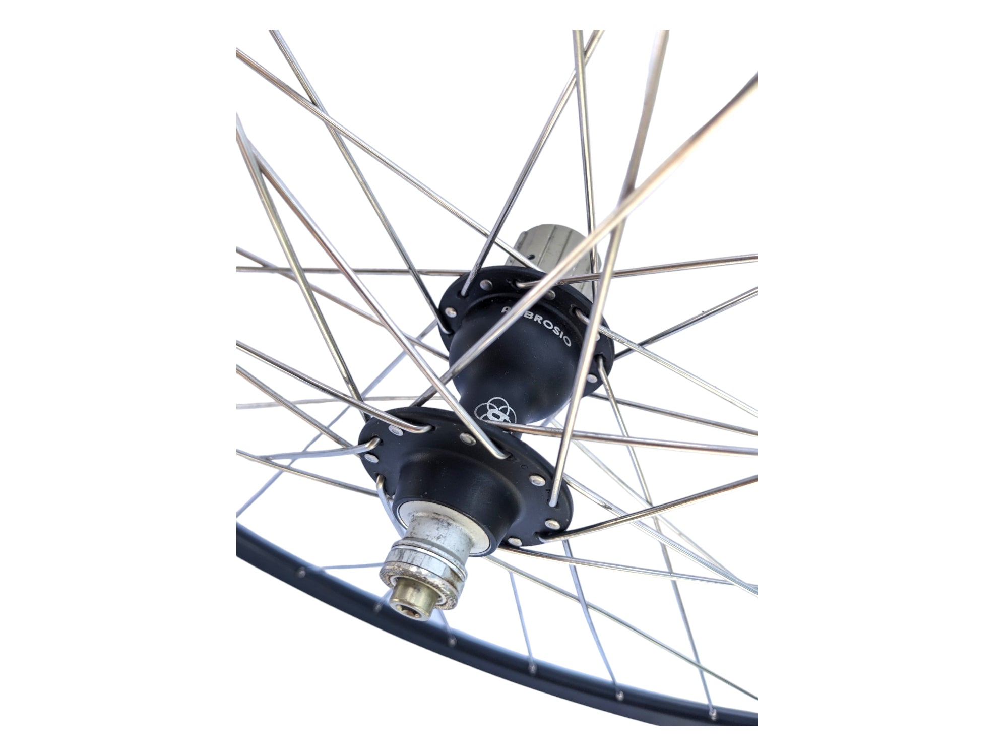 Ryde-Radsatz mit Ambrosio-Naben, 28″ (622 mm) Drahtreifen, mit 100/130 mm Abstand und einem Felgenprofil von 13/20 mm. Gebraucht, gereinigt und voll funktionsfähig
