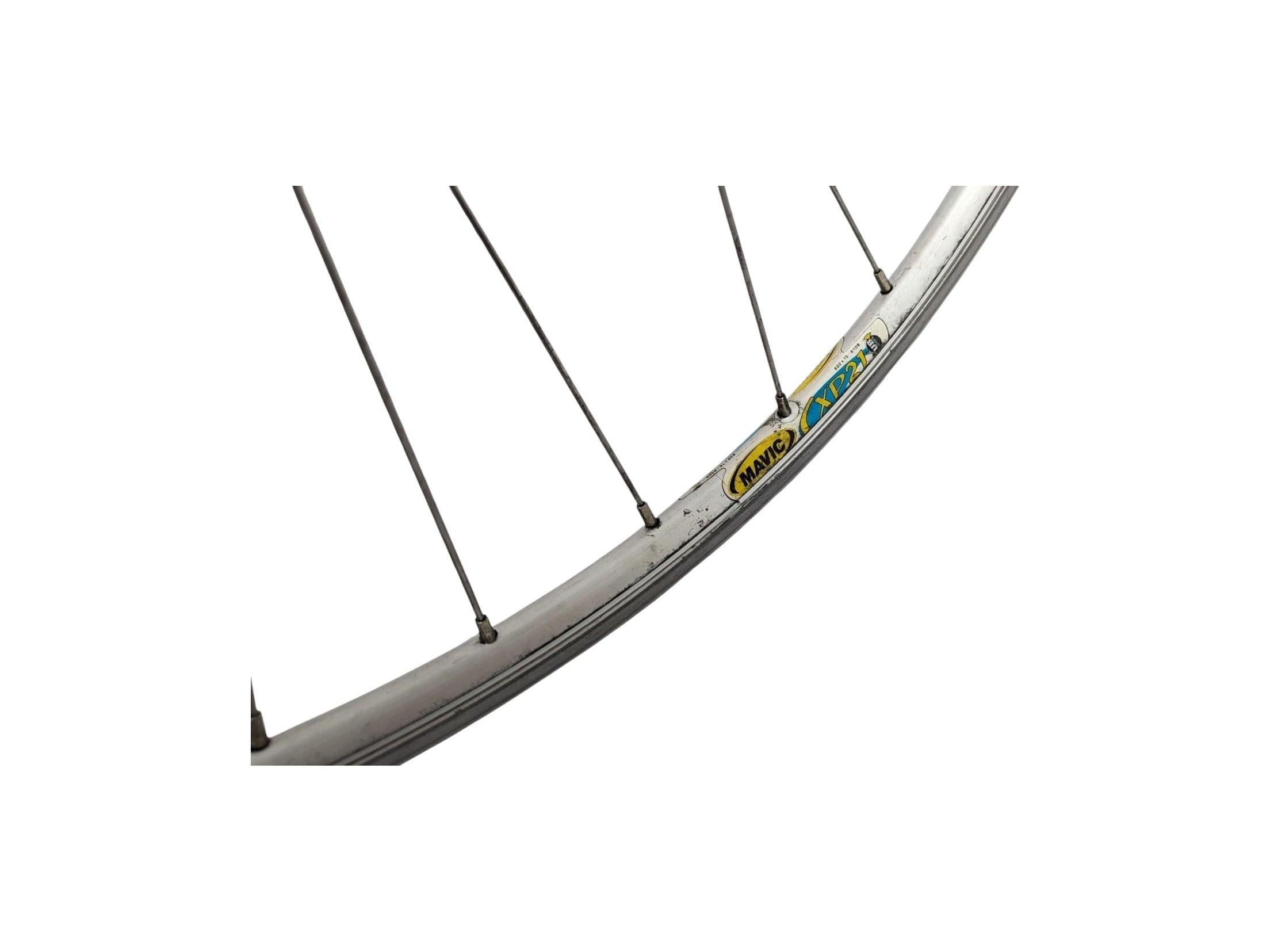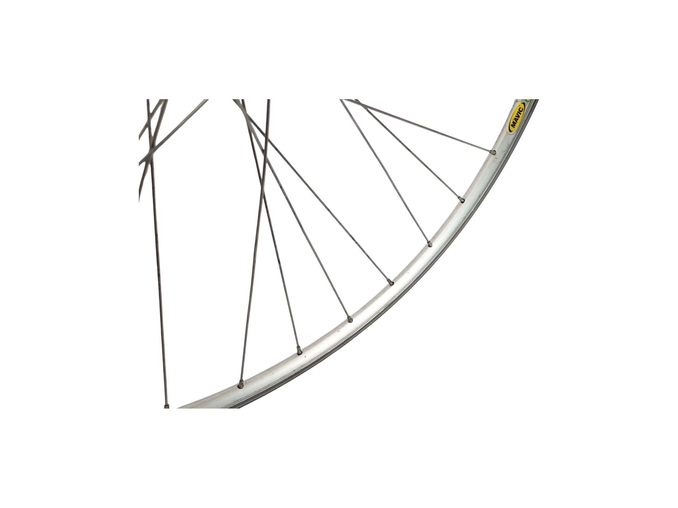 Rueda delantera Mavic CXP21 con buje Shimano 105 HB-1055: una configuración de cubierta confiable para entrenamiento ligero o cuadros de carretera clásicos.