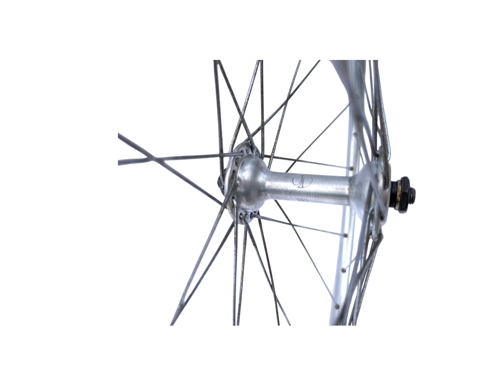 Rueda delantera Mavic Monthlery Route con buje Shimano, tubular 622 (28″), espaciado de 96 mm y ancho de llanta exterior de 22 mm. Llanta francesa combinada con buje japonés para un rendimiento auténtico. Una opción ideal para proyectos históricos y restauraciones de bicicletas de carretera con acabados de época.