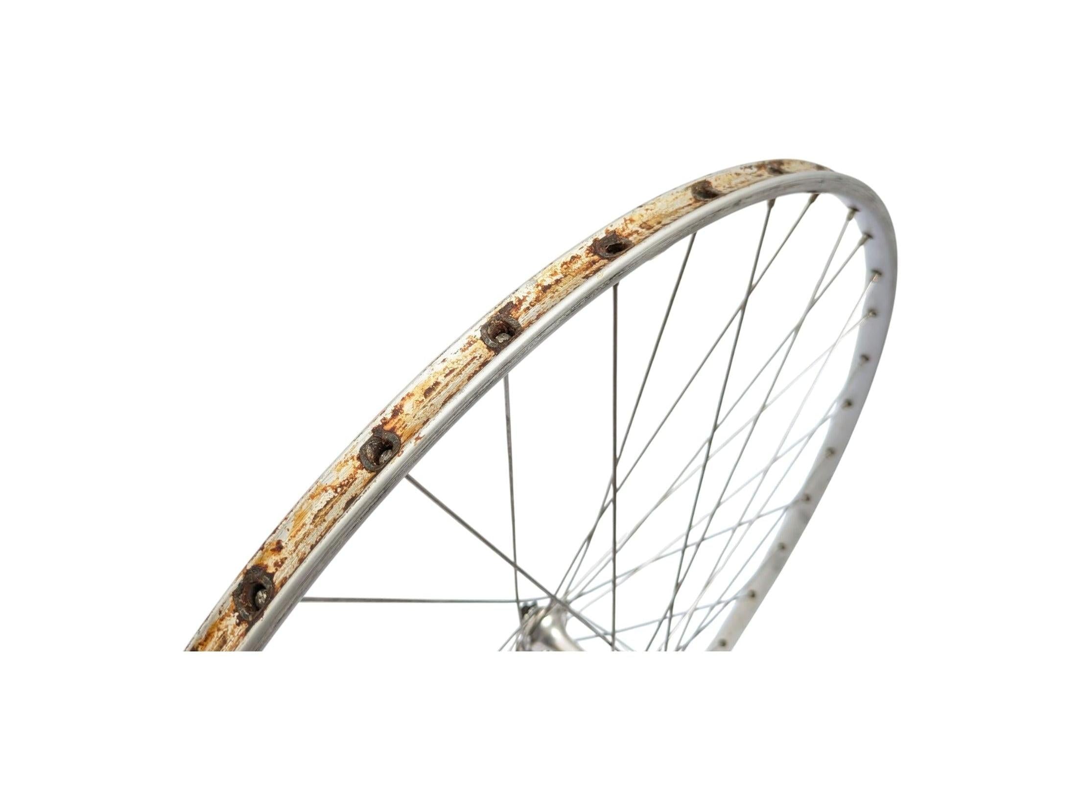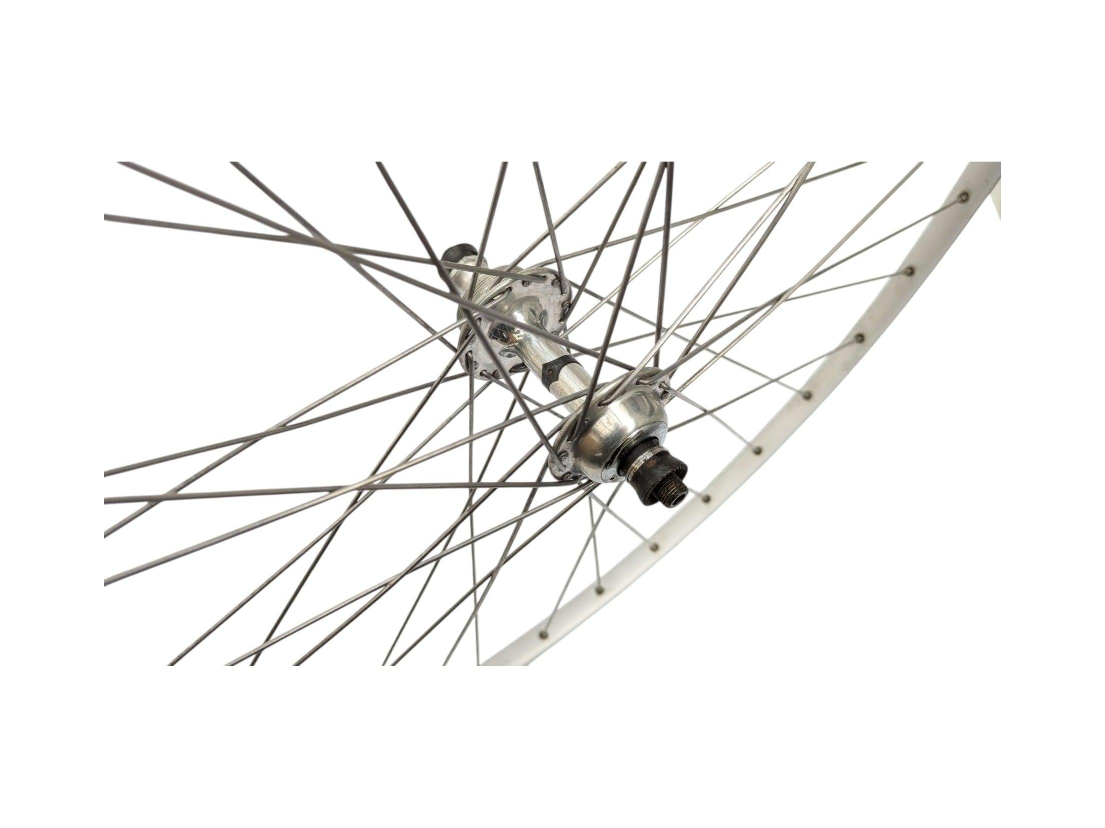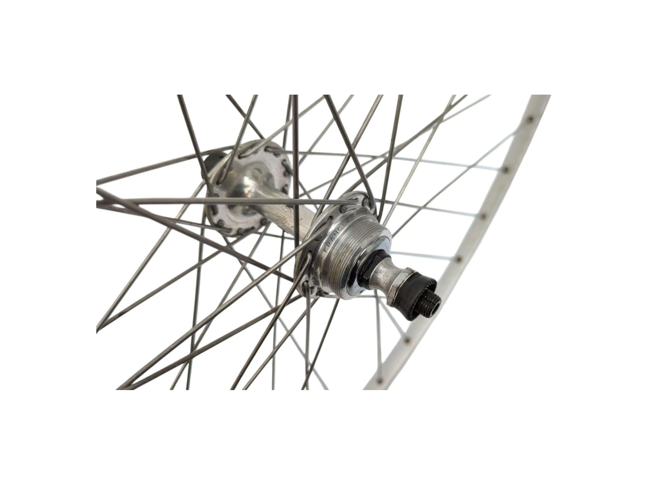 Juego de ruedas Super Champion Competition combinado con bujes Campagnolo Record: una configuración tubular clásica para bicicletas de carretera vintage.