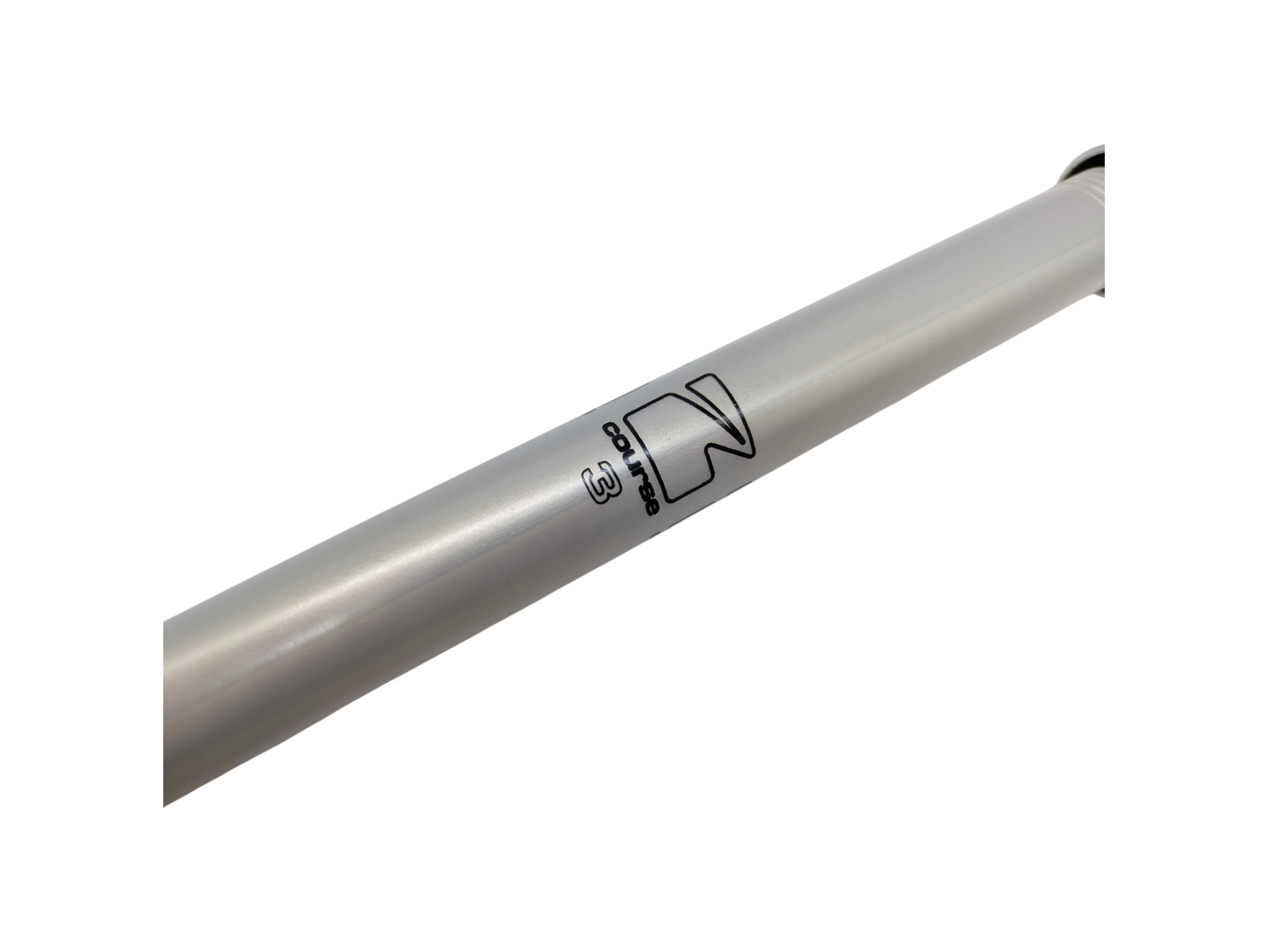 Bomba de cuadro vintage Zefal Course 3 en plata, 52,5 cm sin comprimir. Usada, limpia y en perfecto estado de funcionamiento. Un clásico francés para construcciones de época y restauraciones de bicicletas clásicas.