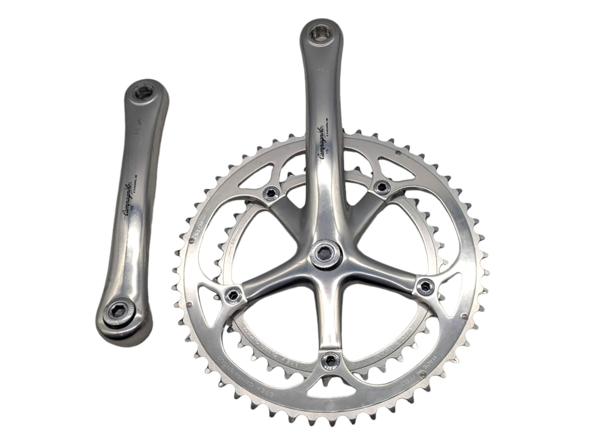 Campagnolo Chorus FC-21H crankset with 175 mm arms and 52/39 chainrings — cleaned and fully functional, perfect for authentic Italian restorations and classic road projects.