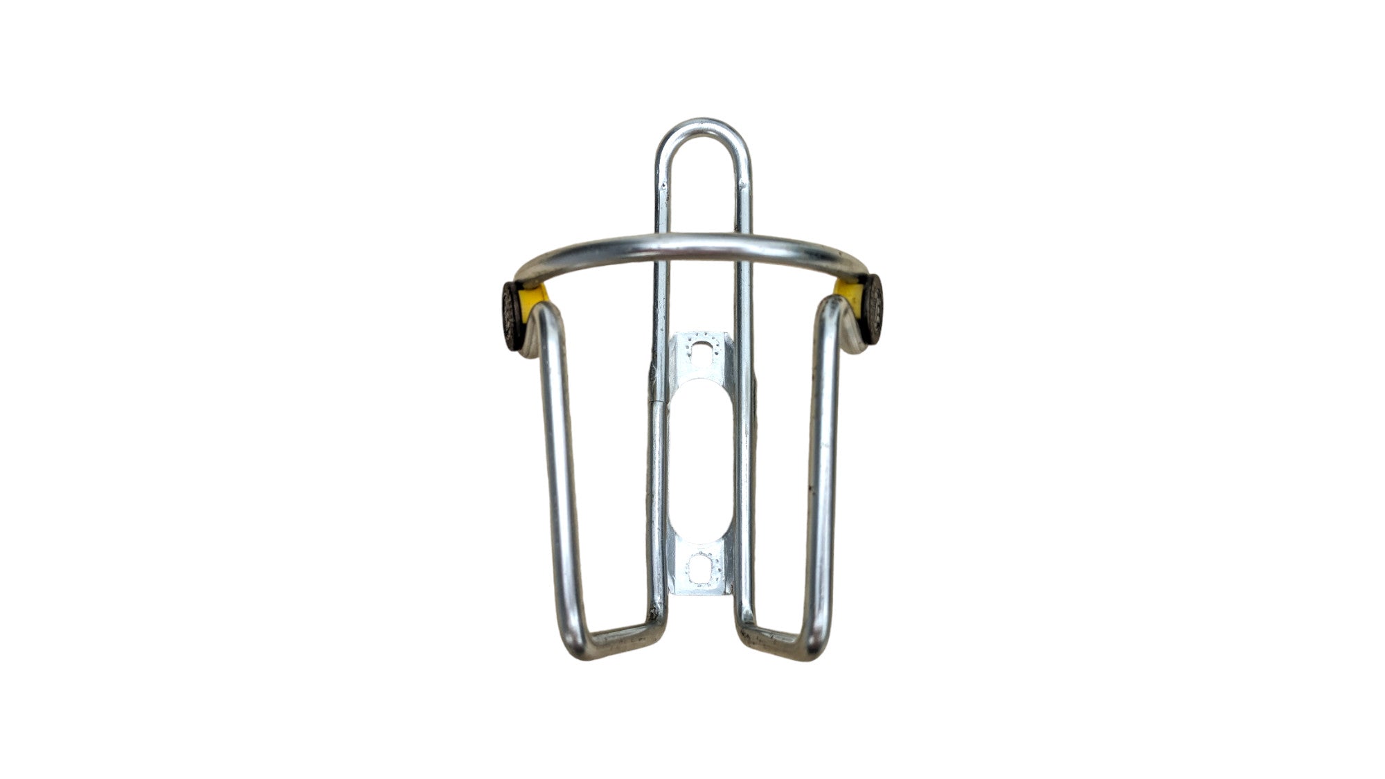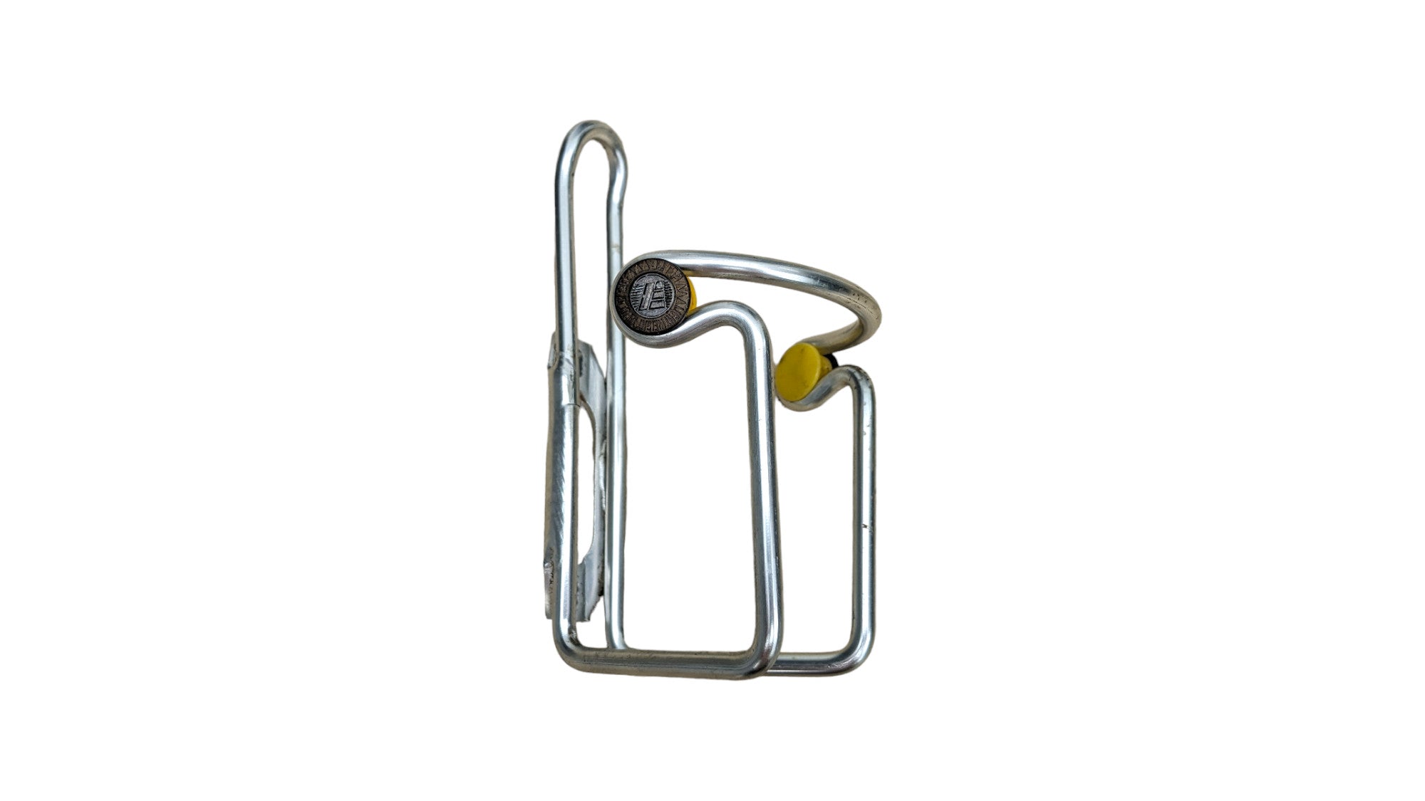 Elite lightweight tubular bottle cage in silver. Used, cleaned and fully functional. A minimalist, vintage-style cage ideal for showcasing period frame lines and securing water bottles with clean aesthetics.